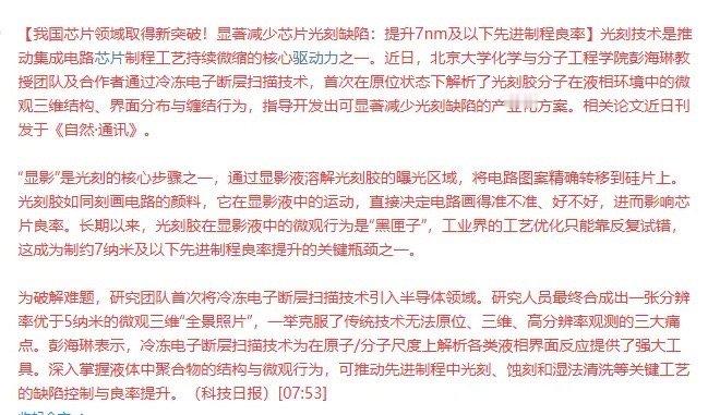 周末半导体,芯片利好!国芯片领域取得新突破!显著减少芯片光刻缺陷:提升7nm及以下先进制程良率。
