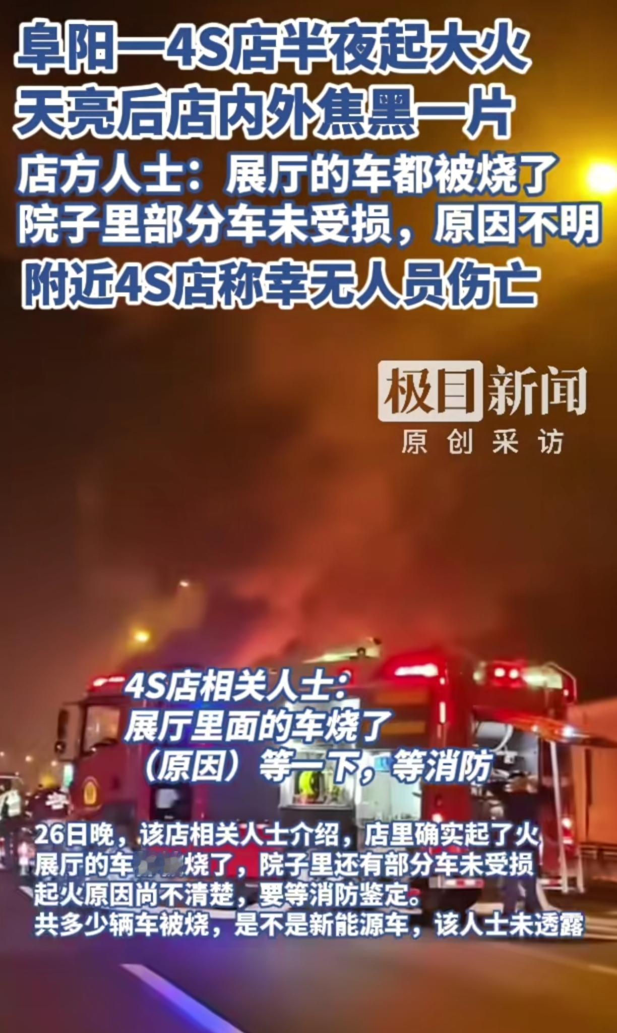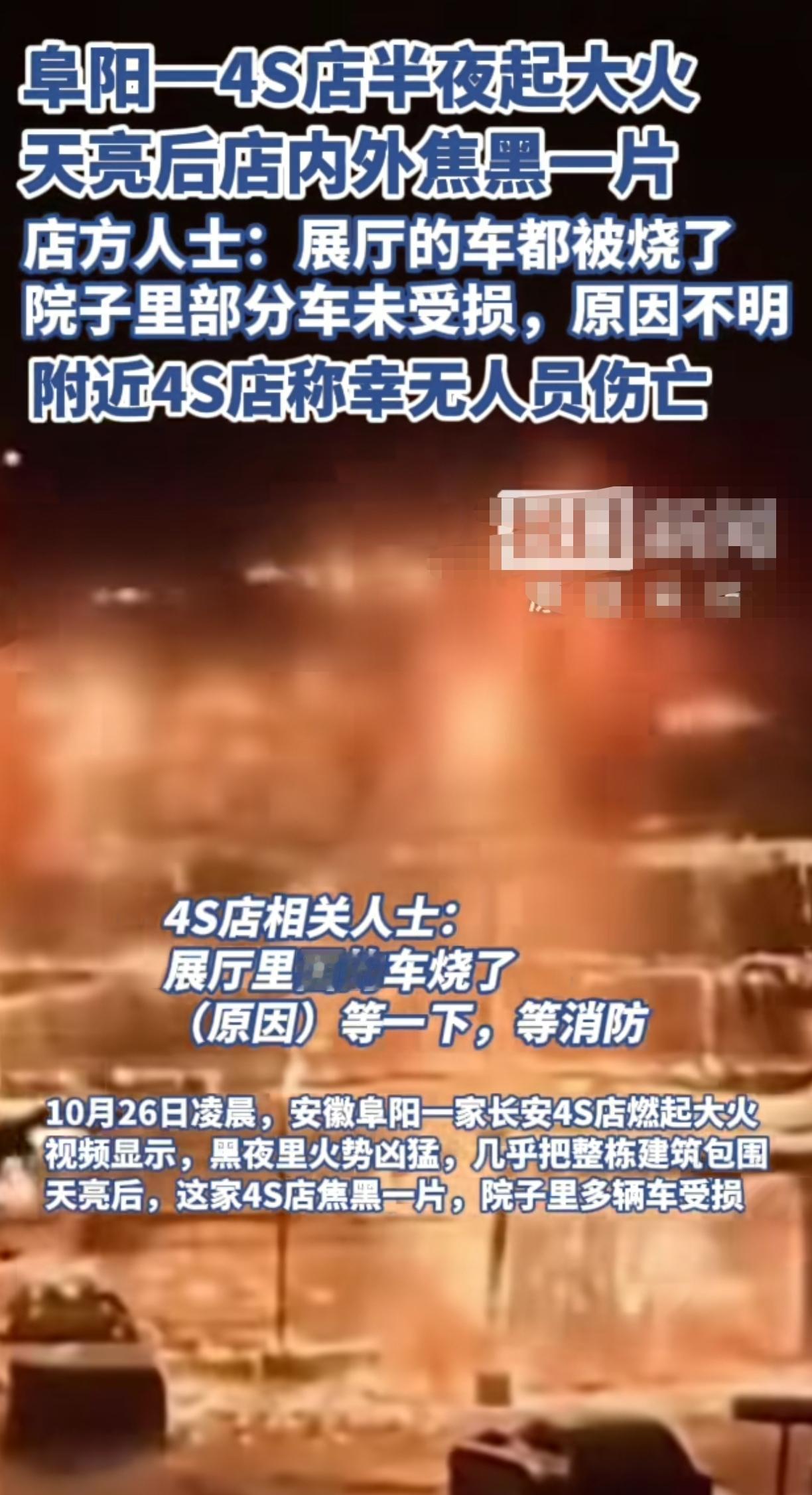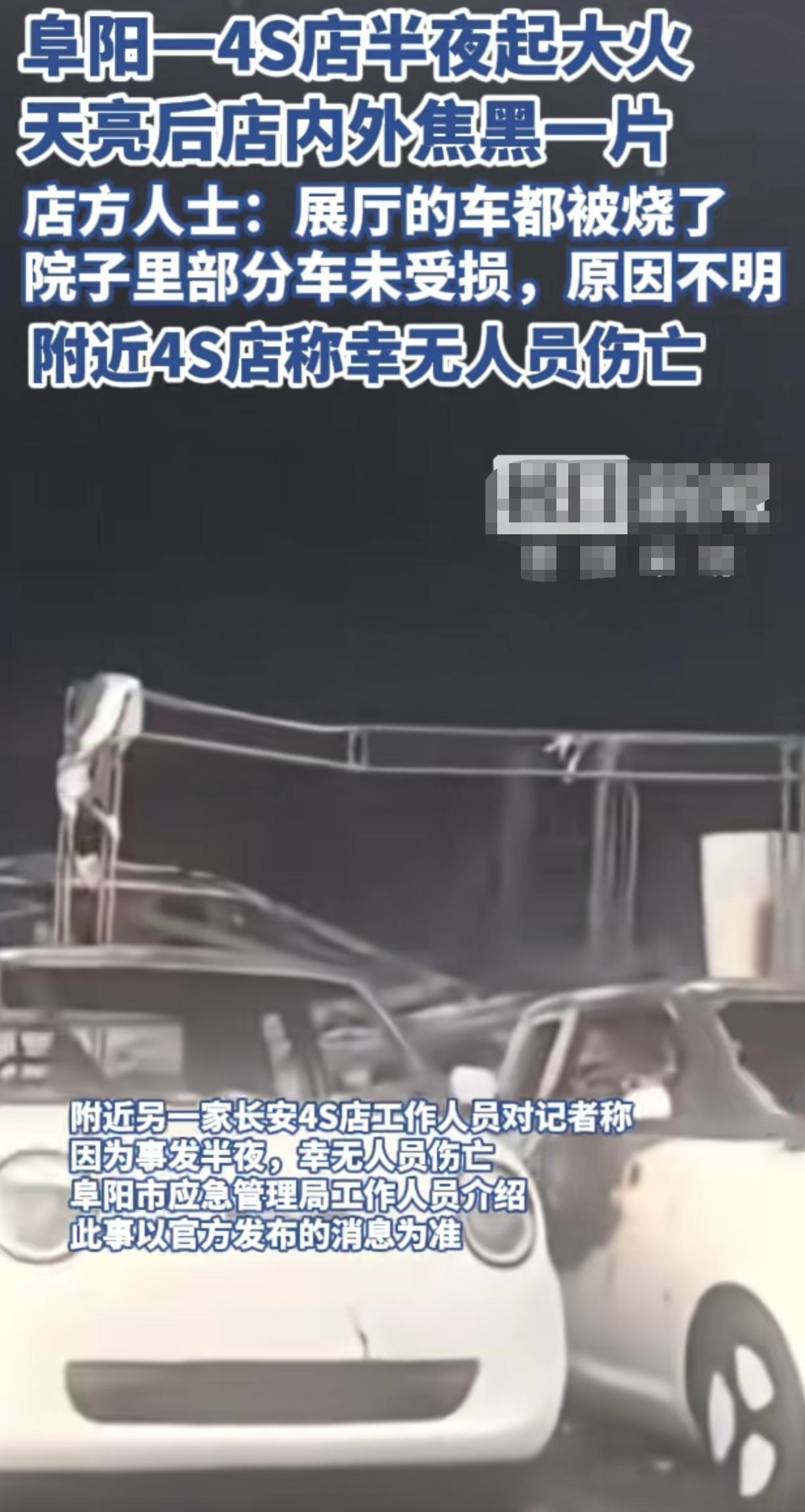 网友拍摄安徽阜阳一4s不明原因导致着火 展厅内多台车子无一幸免,一晚上火光四射,幸好院子里的部分车没事,可惜了这么多台车被烧坏了 凌晨无人时发生这种事情,车商估计头疼死了,一点挽救措施都没使用上,要是新车的话,那都没上保险,没得赔付,这亏损的可不止一星半点了,太难了! 有懂车的能看出这是哪个品牌吗?