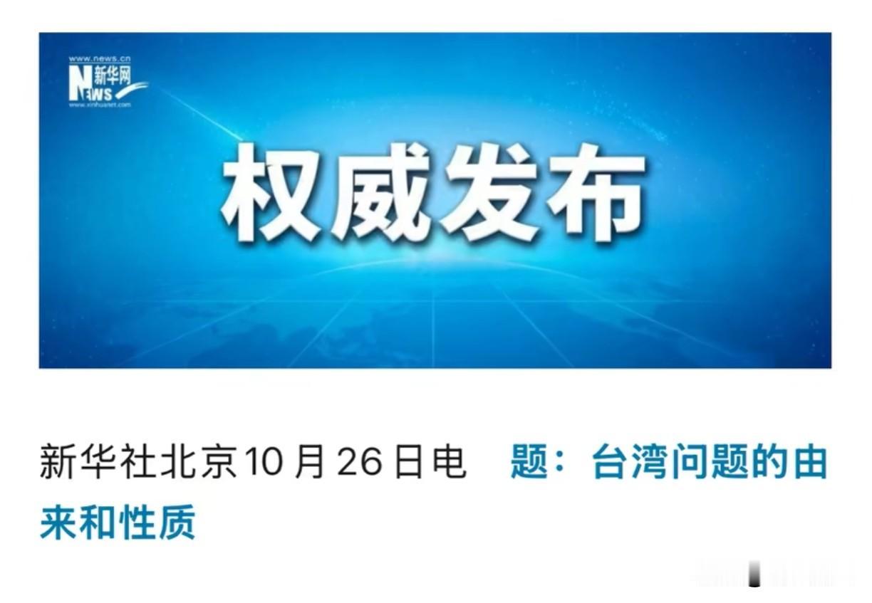 新华社发表重磅文章阐述台湾问题的由来和性质 新华社今日发表署名文章,系统阐述台