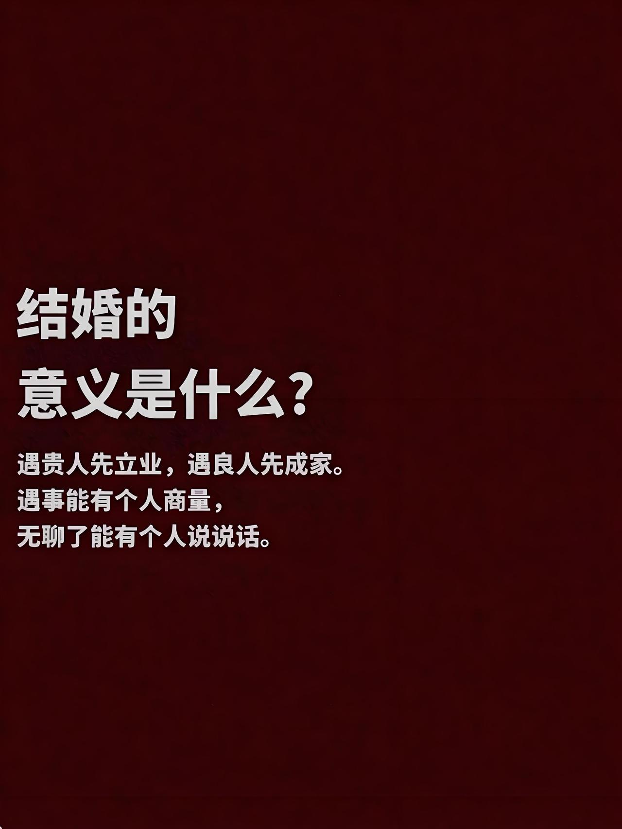 震惊! 现在人结婚早不图 “传宗接代”那套了, 核心目的就俩:情绪搭子+风险合伙人! 以前结婚是“到年纪该办的事”,为了延续香火、凑活过日子。现在年轻人精着呢,自己能赚钱养家,为啥还要进婚姻?说白了,是想找个靠谱的人——加班到深夜有人发句“等你回家”,生病时有人端杯热水,房贷车贷不用自己硬扛,遇事能商量着来,而不是独自面对风雨。 婚姻早从“人生任务”变成了“主动选择的战友联盟”:一起扛生活的难,也一起分小日子的甜,这才是当代人结婚的真刚需!