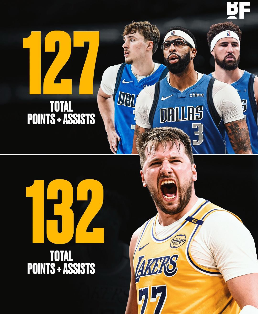 卢卡在本赛季前两场比赛中的总得分和助攻比伏拉格、戴维斯和汤普森的总和还要多[泪奔]