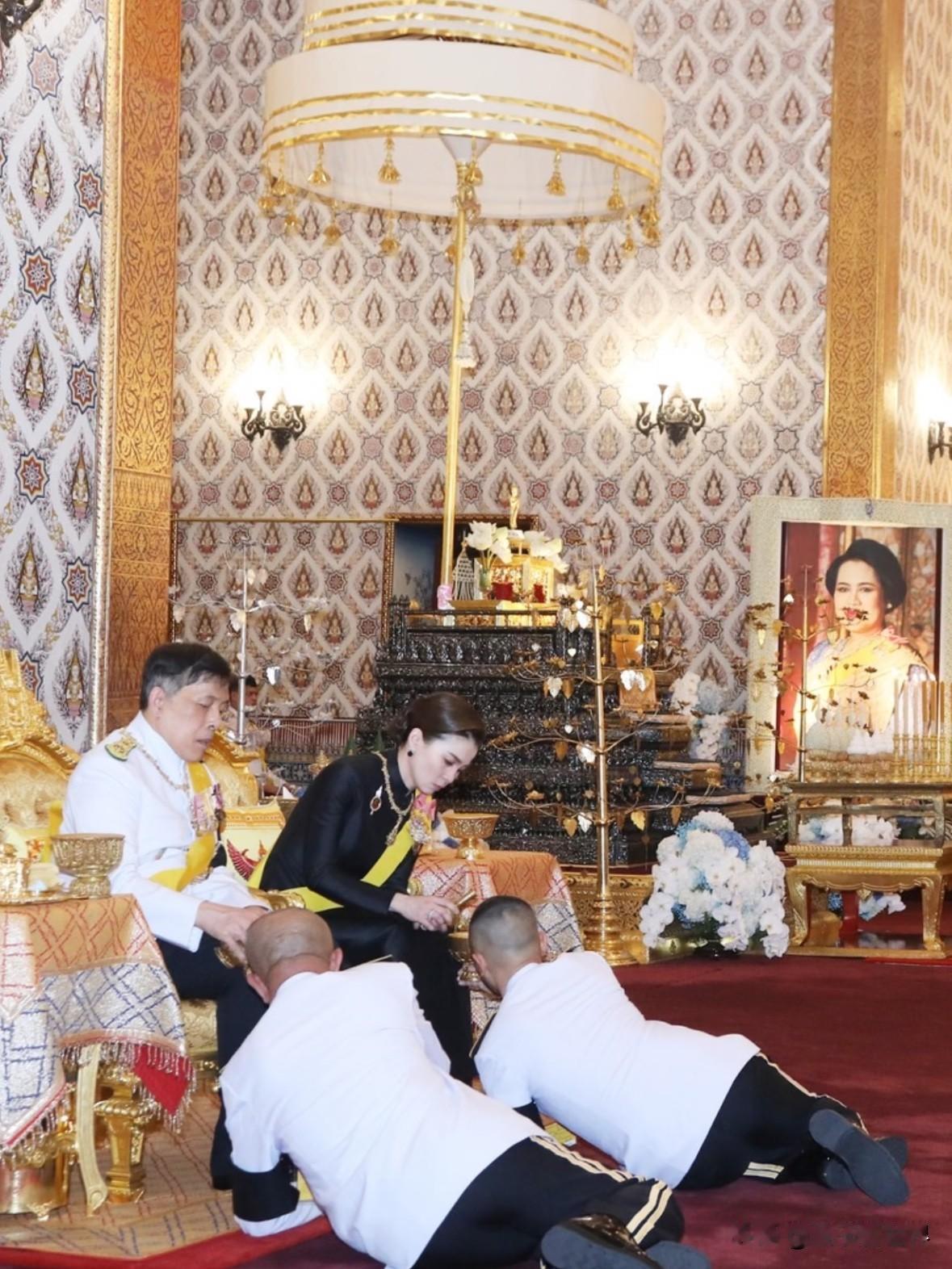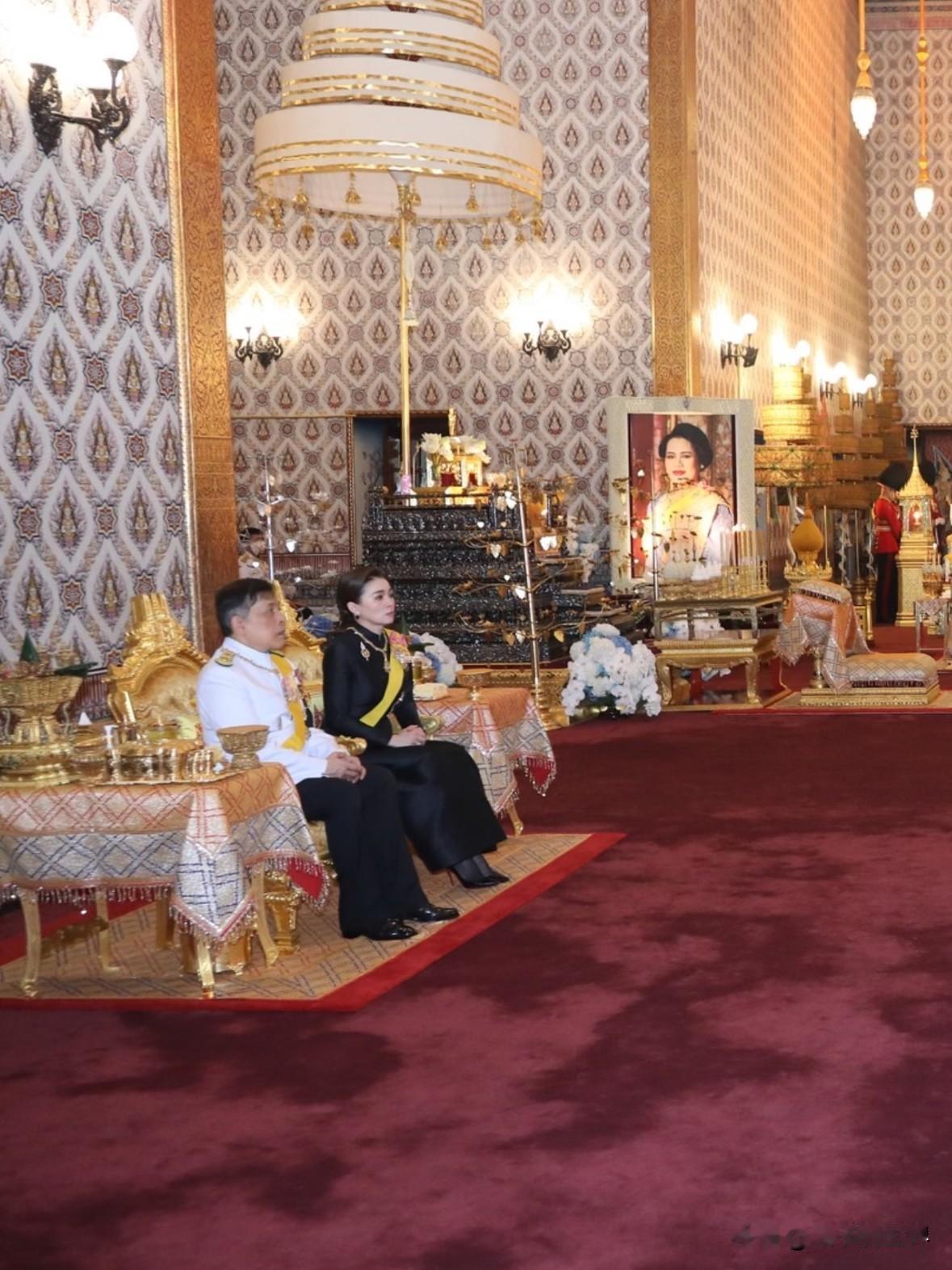 10月26日,泰国国王带着苏提达王后、诗妮娜贵妃一众成员,给诗丽吉王太后办遗体浇水和功德仪式,肃穆归肃穆,但俩人的待遇差得太明显。 苏提达一身黑丧服,全程稳稳跟在国王身边,端庄得很,镜头简直黏在她身上,走到哪儿拍到哪儿,王后的气派一点没藏着。 再看诗妮娜,特意归国来参加,结果整场下来连个特写都没有。镜头扫过的时候,她就默默缩在后面,身影都不起眼,跟以前还会悄悄争存在感的样子完全不一样。 明显是认了次位,连抢镜的资格都没了。一场仪式而已,谁是主、谁是次,明明白白!