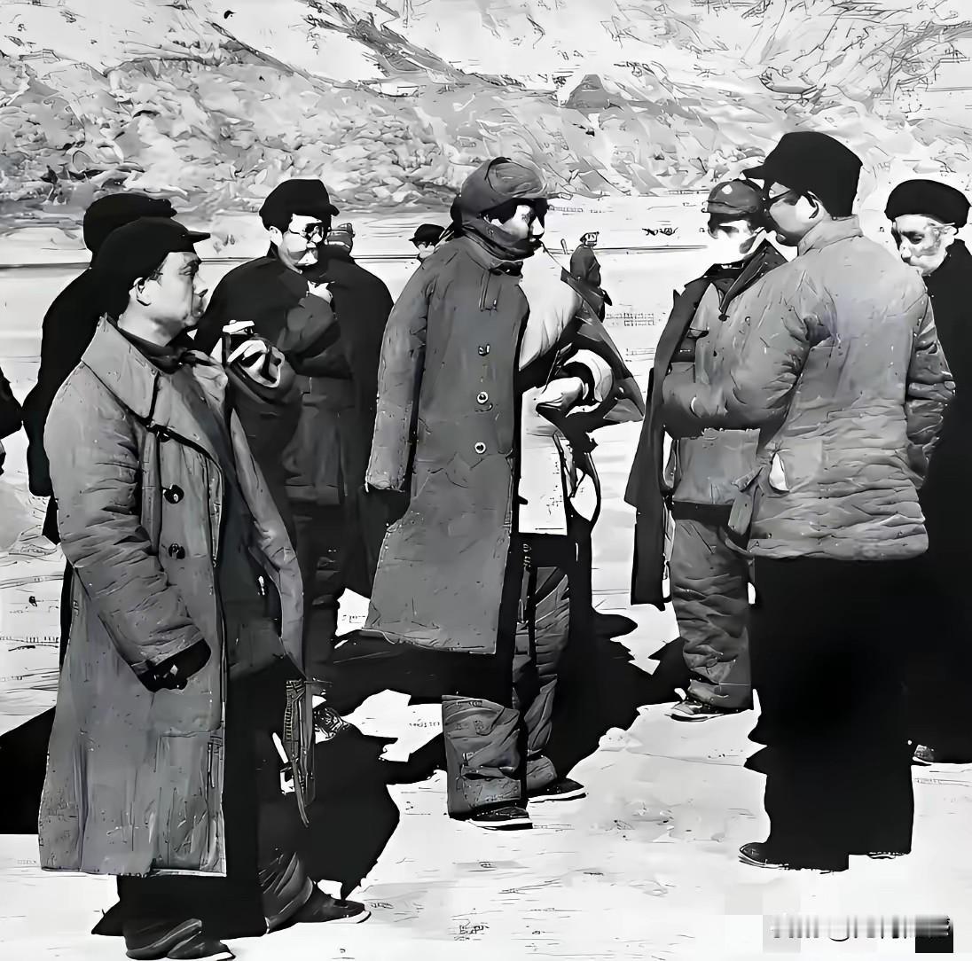 虽然这是一张黑白照片,但是看起来特别的苍茫辽阔,不知道这是不是在黄土高原照的,不过看这里的地貌特征,还是有些像的。照片中以老人家为首的一众人,穿着打扮都是那样的朴实,但身影却特别的高大,他们在最艰苦的地方,做着最伟大的事情,他们的功绩是标兵史册的,永远怀念老人家,他永远活在人民的心中!