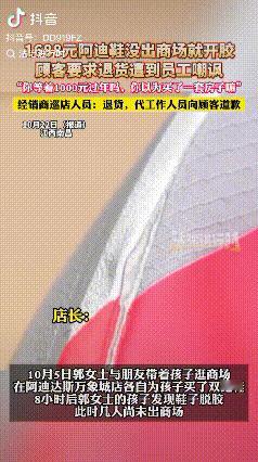 简直是倒反天罡!江西南昌的一家阿迪达斯门店,一位妈妈花一千多块给孩子买了双跑鞋。可谁能料到,她带着孩子在商场里玩了8个多小时,鞋都还没走出商场大门呢,就发现鞋帮脱胶了。 这妈妈就回店里要求退货,结果店长直接给拒绝了。更可气的是,这女子找记者来维权,那店长不但不解决问题,还冷嘲热讽地说:“你这么能耐,直接打12315去啊!就等着这1000块钱过年呐?” 听他这话,真是又生气又寒心。 一千多块的鞋,对普通家庭来说可不是个小数目。谁挣钱都不容易,消费者花这钱,买的是品质,更是信任。新鞋刚买就脱胶,这明摆着是商品质量有问题,咋还成顾客故意找茬儿了呢? 这事有两点让我想不明白。 第一,为啥大品牌对质量把关这么松呢?上千元的鞋子,质量还不如地摊货,这能说得过去吗? 第二,为啥店员能这么理直气壮地推卸责任呢?顾客是来消费的,又不是来受气的。 现实里,这种“店大欺客”的事儿还真不少。有些销售人员站在柜台后面,就忘了自己是干啥的了。他们穿着品牌工作服,却把尊重顾客这最基本的职业素养给丢了。 不过让人欣慰的是,按照消费者权益保护法,产品在七天内出性能故障,消费者有权要求退货。12315可不是店长说的用来“吓唬人”的,而是消费者实实在在维权的武器。 目前,这女子已经向12315投诉了。盼着相关部门能给出个公正的处理结果。也想跟商家说一句:水能载舟亦能覆舟,别等把消费者的信任弄没了才知道后悔。 这件事你们咋看?欢迎留言讨论。 来源:法治进行时 2025-10-27