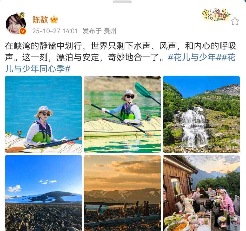 陈数晒花儿与少年旅行照!她说:在峡湾的静谧中划行,世界只剩下水声、风声,和内心的呼吸声。这一刻,漂泊与安定,奇妙地合一了…… 我想说的是,陈数的划船装扮好酷呀!这么美的风景,这么静谧的氛围感,这么酷的陈数,看着看着就醉了…… 这一刻,多么向往峡湾啊!唉,如果有钱该多好呀,马上飞往峡湾,说不定还能与陈数偶遇呢,光想想就很美好! 不得不说,钱真是个好东西,有钱想去旅行就去旅行,想吃好吃的就吃好吃的,想干嘛就干嘛,只要不干违法的就行…… 哈哈,努力吧,努力赚钱吧……