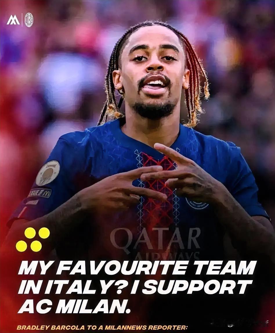 巴尔克拉!法甲巴黎圣日耳曼球员巴尔克拉表示我非常喜爱AC米兰,他是意大利最好的球