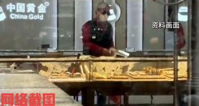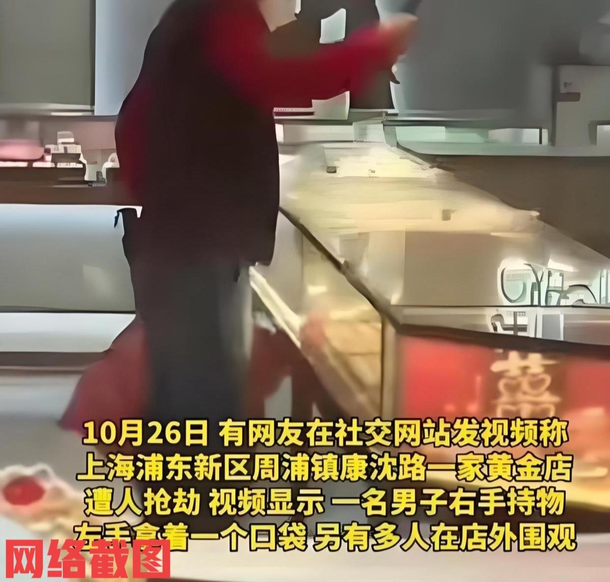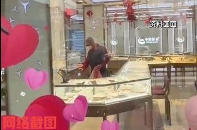 上海浦东的“中国黄金”店一幕闹剧。 有男子戴墨镜口罩走进金店,不容分说直接开砸