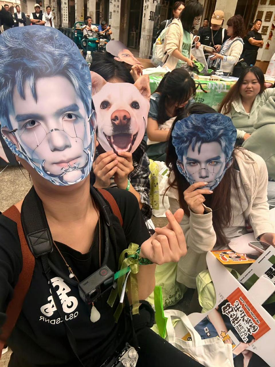 吴磊电影杀青,粉丝应援好有趣! 近日吴磊电影《旺铺开业指南》杀青,粉丝们纷纷赶来应援,每人头上都戴着吴磊的各种头像面具,看上去有趣搞笑又特别。 吴磊 吴磊旺铺开业指南