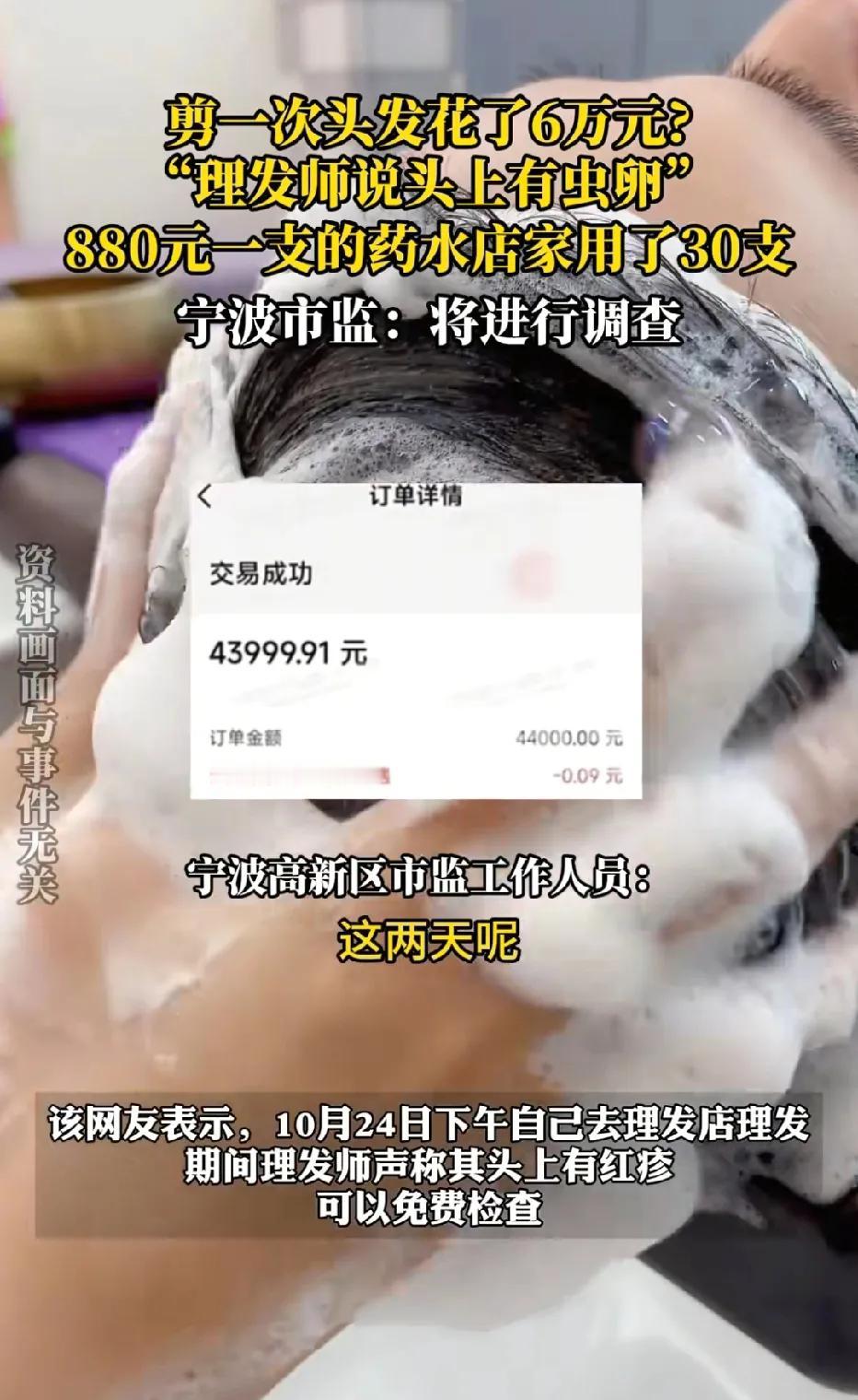 浙江宁波,男子去理发,理发师称其头皮有红疹,可免费检查,男子做完检查后,理发师又