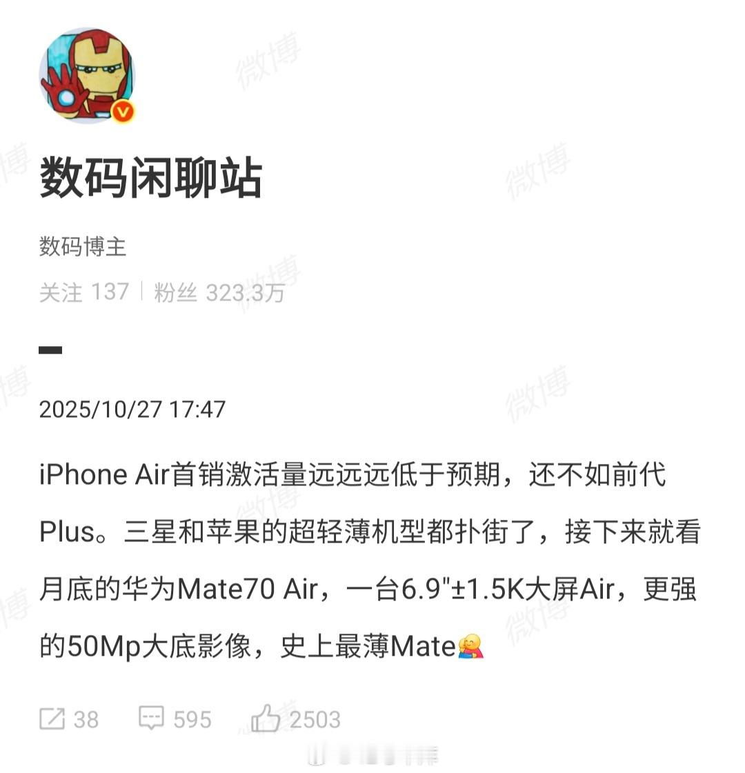 三星和苹果的轻薄版都有点扑了,你们觉得华为的 Mate 70 Air 能成功吗?