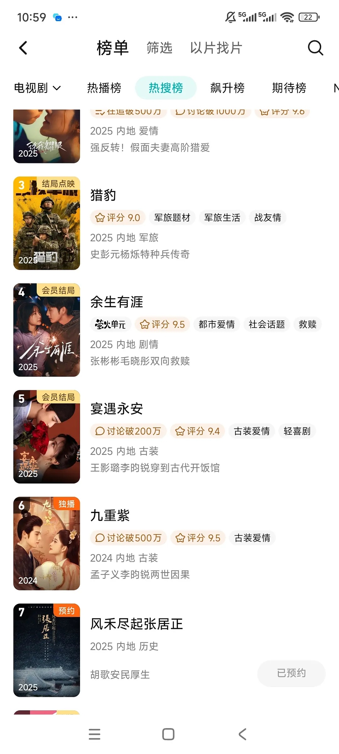 张居正腾讯已经3万预约了,热搜榜第七,前六都是已播剧
