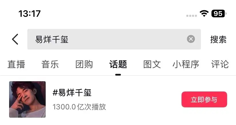 易烊千玺🫘话题播放量破1300亿(本人和工作室未入驻版)回一趟中戏2天5亿增量