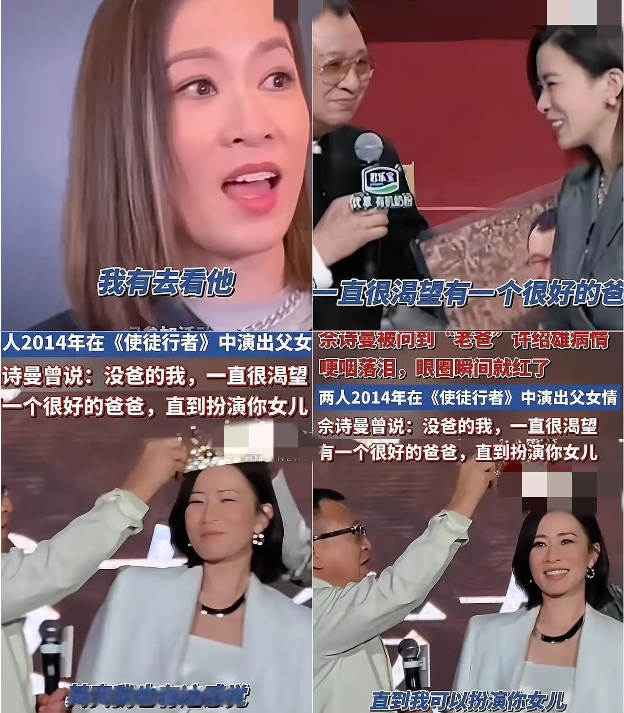 佘诗曼好人缘,许绍雄唯一认证干女儿,两人感情不言而喻,佘诗曼也是性情中人,泪洒采访现场,看看许绍雄提起佘诗曼多开心,就知道佘诗曼为什么在采访时提起许绍雄的病情就忍不住落泪,十几岁就没了父亲的佘诗曼真的拿许绍雄当亲爸!随便一搜,一堆堆许绍雄和佘诗曼的亲密合影,除了工作更有私人聚会,两“父女”每次出镜合影要不你搭着我,要不我搭着你,一看这关系就是真的好,亲父女也不过如此吧!佘诗曼
