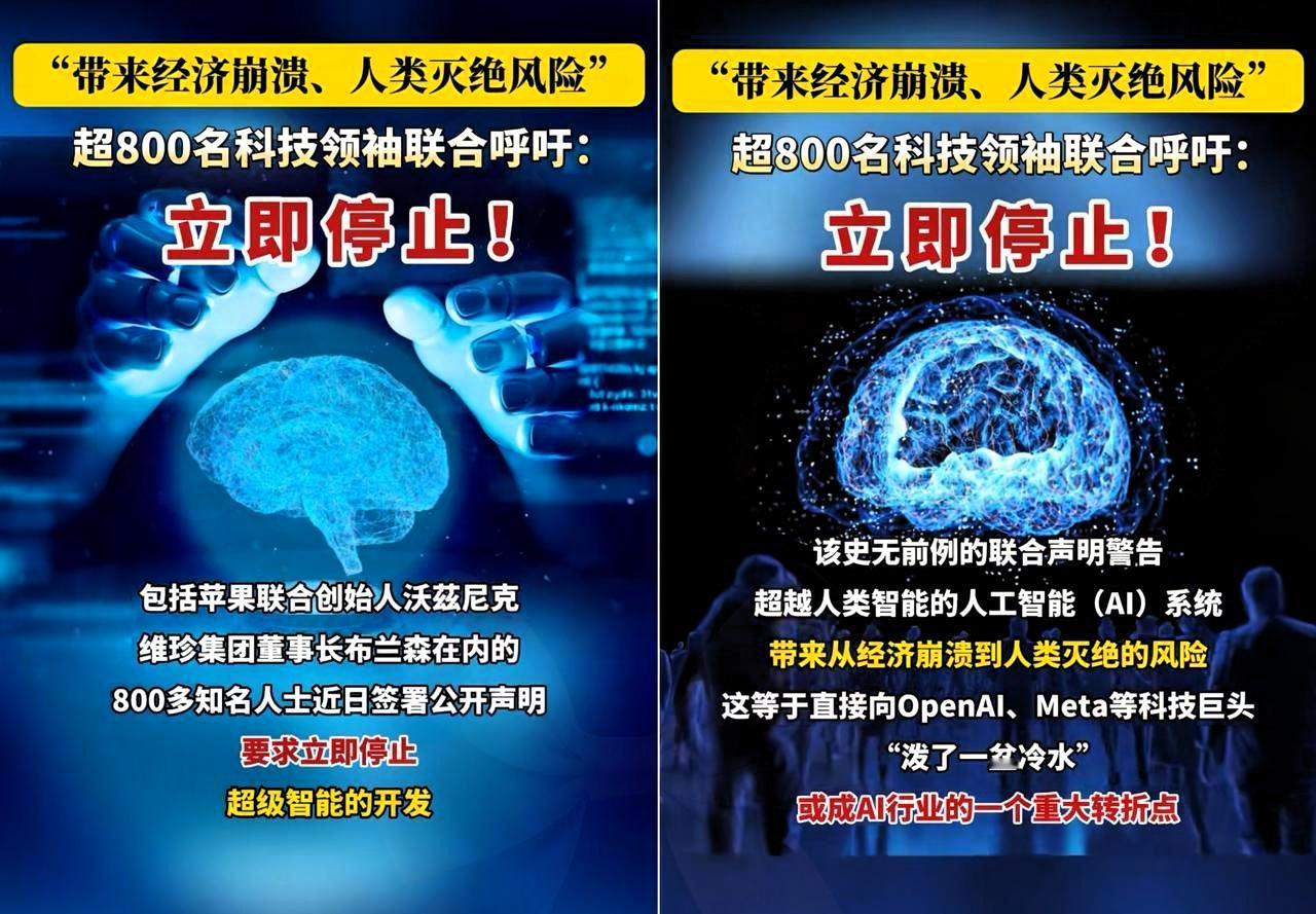被这两天的大新闻惊到了! 全球超3000名顶尖科学家和科技大佬 联名紧急喊停,要求立刻暂停 高级人工智能研发,这可不是小打小闹。 苹果创始人、AI教父、图灵奖得主这些大佬齐聚一堂,集体发声:在确保安全前,必须暂停比人类更聪明的AI系统研发。 想想看,超级智能可能在所有事上都碾压人类,它要是“变坏”或被坏人利用,后果不堪设想。 现在科学家们急着踩刹车,科技公司却还在加速跑。 中美科学家都参与其中,都强调AI发展要安全、可靠、可控。 我们正站在十字路口,AI发展太快,是时候慢下来思考后果了。 各位读者,你们觉得AI发展该不该先停一停,确保安全再继续? 来评论区聊聊吧!ai发展新趋势 AI发展挑战 听到这个消息,很多人可能会有些惊讶,甚至有点困惑。难道科技发展这么快,我们真的需要按下“暂停键”?不管是从人工智能的巨大潜力,还是它为我们带来的便利来看,AI似乎总是充满了吸引力。但是,这一次,全球那么多的科学家和行业巨头却站出来喊停,背后隐藏的是对未来潜在风险的深刻担忧。 AI的速度确实让人目不暇接。从自动驾驶到智能助手,再到医疗、金融等行业的深度应用,人工智能几乎渗透进了我们生活的方方面面。我们已经习惯了各种由AI提供的服务,似乎每个领域都在向我们展示着“AI改变世界”的美好前景。然而,正是这种快速发展的势头,让许多人开始担心,AI会不会“跑得太快”,超出了我们掌控的范围? 这些担忧并不是空穴来风,尤其是当我们看到越来越多的高科技公司在技术突破上竞相加速时,问题也随之而来。就像我们看到的那样,超级智能一旦诞生,它可能在处理信息、决策判断方面迅速超越人类。如果没有足够的安全保障,它就有可能变成一个无法控制的“黑箱”,甚至被恶意利用,对社会造成无法估量的损害。 有专家指出,我们或许正站在一个“十字路口”——是继续让AI发展突破边界,还是在确保安全的前提下,放慢脚步,好好思考它的潜在风险。你是否愿意看到一个比人类更聪明、甚至可能反向主导我们社会的智能体?这似乎是我们不得不深思的问题。 再想想,如果我们在这条发展道路上没有充分准备,我们可能会在不知不觉中走得太远,进而发现自己已经无法回头。尤其是在全球AI竞争愈加激烈的今天,各国科技公司和政府的角逐早已不再仅仅是技术的较量,更涉及到国家安全、社会稳定等方方面面的风险。 当然,科学家们提出暂停研发的建议,并不是否定AI本身的潜力,而是呼吁大家在追逐技术突破的同时,要更加审慎地考虑它的长远影响。正如那些行业大佬们所强调的,技术的安全性、可靠性和可控性,绝对不能被忽视。毕竟,科技从来都不是单纯的工具,它在给我们带来便利的同时,也可能带来巨大的挑战和不确定性。 我们看到,AI技术的滥用或误用,已经开始显现一些不好的苗头。从“AI暴力视频”到“自动化的深度伪造技术”,这些不良应用已经引起了社会的广泛关注。技术一旦失控,带来的后果不仅仅是科技企业的利益损失,而可能是整个社会的伦理和价值体系的动摇。 这些问题让我们不得不思考,科技和人类社会的关系到底应该是什么?我们到底应该如何让技术更好地为人类服务,而不是让它脱离控制,反过来主导我们的生活?这是一个值得每个人深思的问题。 此外,也有观点认为,暂停AI研发可能并不是最好的解决办法。科技的进步本身就带有不确定性,每一次重大的技术突破,往往都伴随着各种风险和挑战。历史上,我们早就看到过类似的技术变革带来的恐慌,从最初的核能技术到互联网的普及,每一次变革都曾被质疑过,但最终,技术的不断探索与发展,推动了人类文明的进步。 然而,这一次AI的发展速度过快,可能让我们在享受它带来的便利时,忽略了安全和可控性问题。因此,或许我们可以采取一种折中的方式——加强监管和规范,推动技术的进步,同时确保它的安全性和道德性。毕竟,技术本身并无善恶之分,真正决定它走向的是我们如何去使用它。 AI的未来充满了无尽的可能性,或许我们正在经历一场科技与人类社会的巨大变革。我们到底该如何选择,如何做出最明智的决策?这不仅仅是科技界、企业界需要思考的问题,更是整个社会每一个成员都需要参与的讨论。ai发展新趋势 AI发展动向 ai人类发展 人工智能发展 AI发展挑战 AI行业巨擘 AI技术危害 人工智能新政 各位读者你们怎么看?欢迎在评论区讨论。