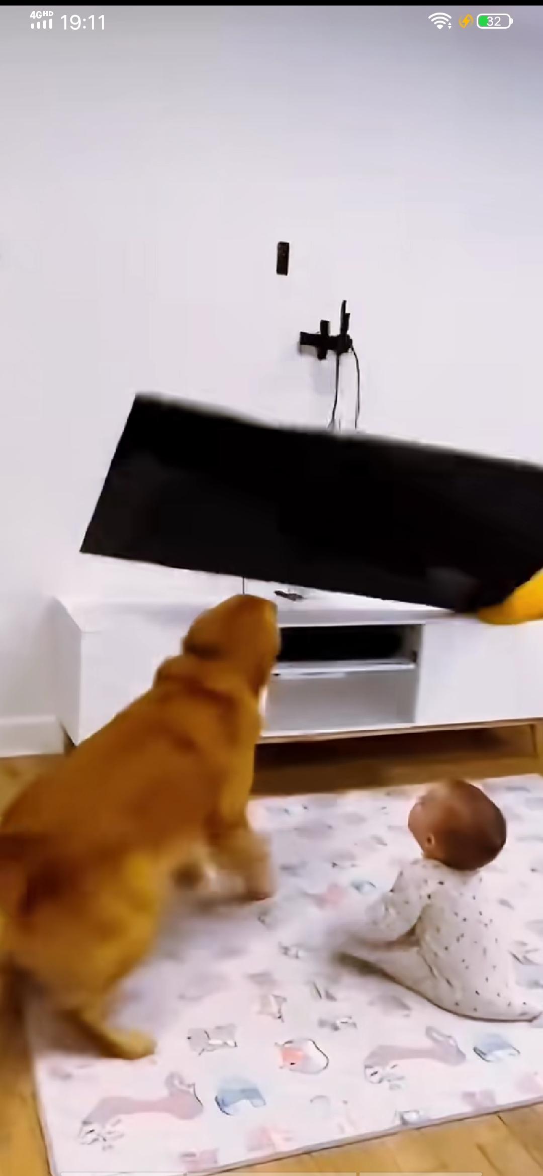 万物皆有灵,这条金毛的举动,令人感动! 一名幼儿,坐在家中的地板上,开心的玩耍着,此时此刻——一场危险正在酝酿…… 家中的液晶电视,突然,从墙上掉了下来,眼看就要砸到——坐在地上的孩子…… 就在千钧一发之际,站在一旁的金毛,迅速冲上前,用自己的身体,稳稳的挡住了——落下的电视…… 孩子毫发无伤,金毛却被掉落的电视,重重的砸在下面…… 万物皆有灵,关键时刻,勇敢的金毛,舍身护救幼儿的画面,让人震撼,深受感动……