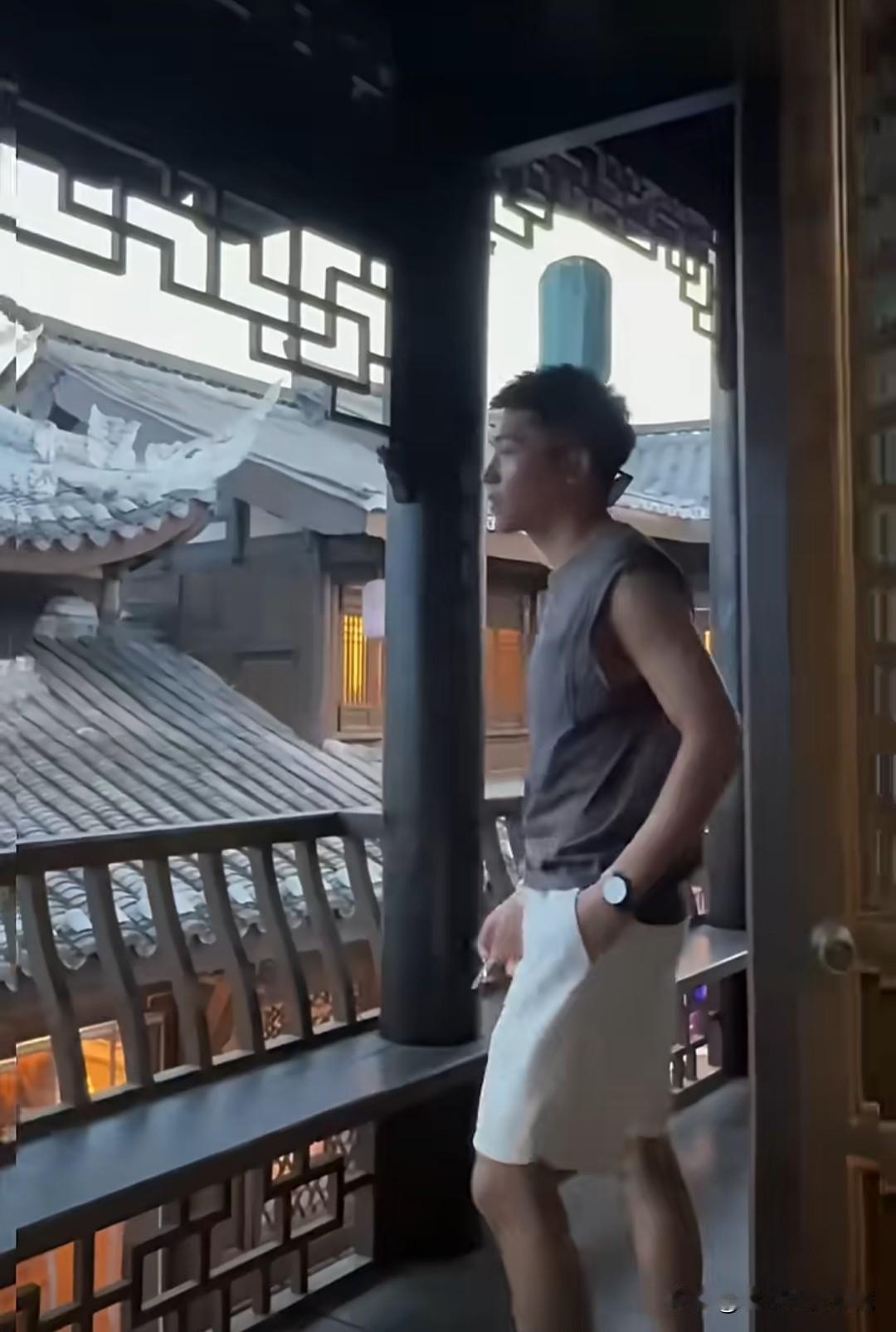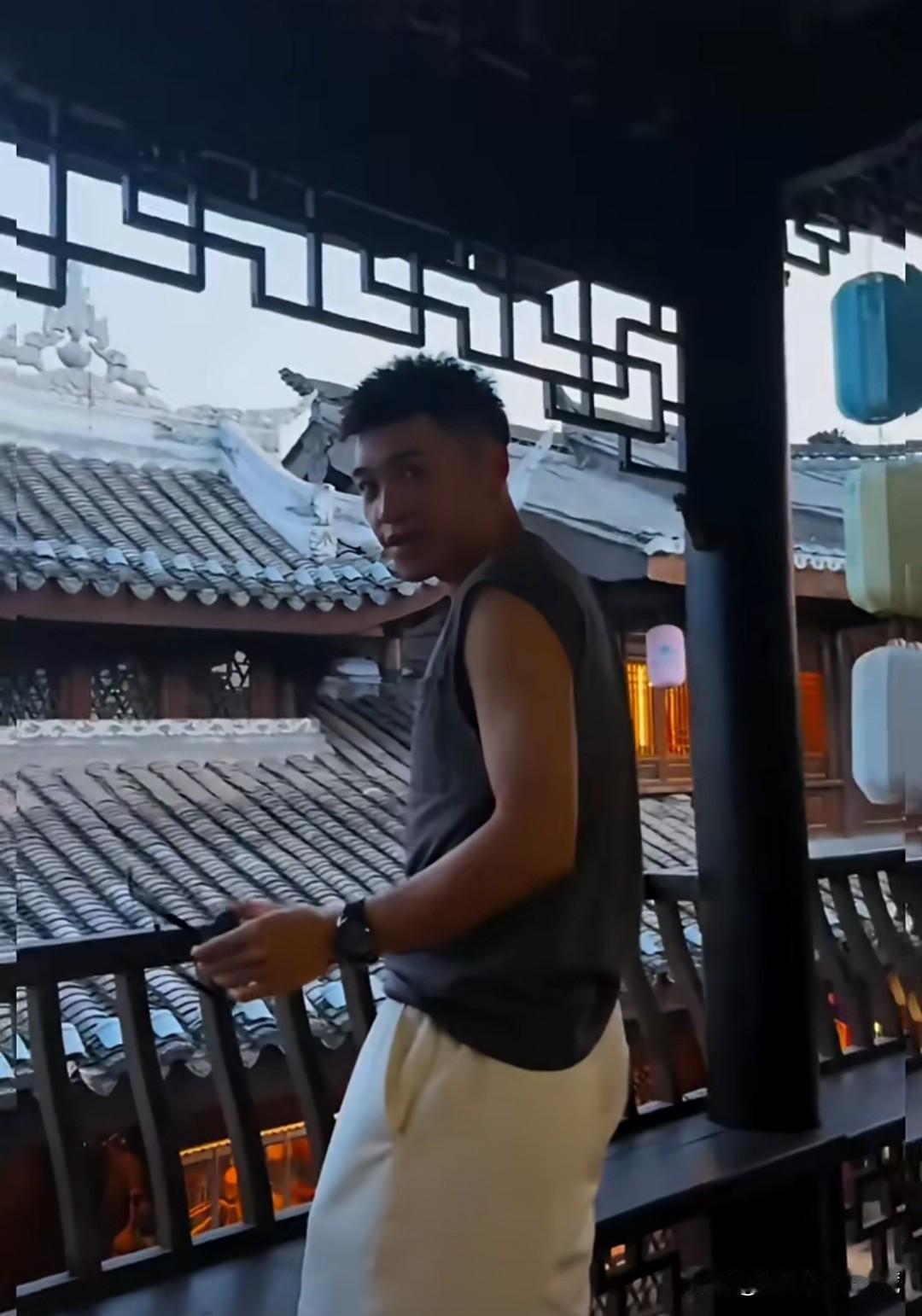 身穿灰色无袖体恤衫、白色短裤的自贡最帅交警陈俊又酷又帅气,他的一步三摇的走姿,痞帅的笑容,永远充满阳光的陈俊怎叫人不爱!