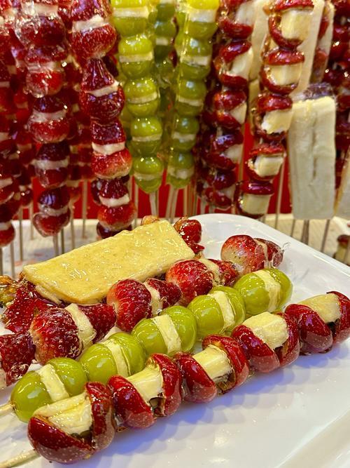 听说,奶皮子糖葫芦爆火出圈! 近日,奶皮子糖葫芦风靡全国! 区别于传统冰糖葫芦,它将内蒙古醇厚香脆的奶皮子,与酸甜山楂、软糯香米结合! 创新的做法还有,加入晴王葡萄、草莓等食材,不但颜值高,还看起来酸甜可口! 我不怎么爱吃糖葫芦的人,前阵子刚好买了一个尝尝,还挺好吃的,奶香味挺浓的,跟传统的糖葫芦口感略有差别。 奶皮子糖葫芦 糖葫芦水果 烤奶皮糖葫芦 牙克石糖葫芦 包头奶皮糖葫芦 东胜奶皮糖葫芦 内蒙古糖葫芦