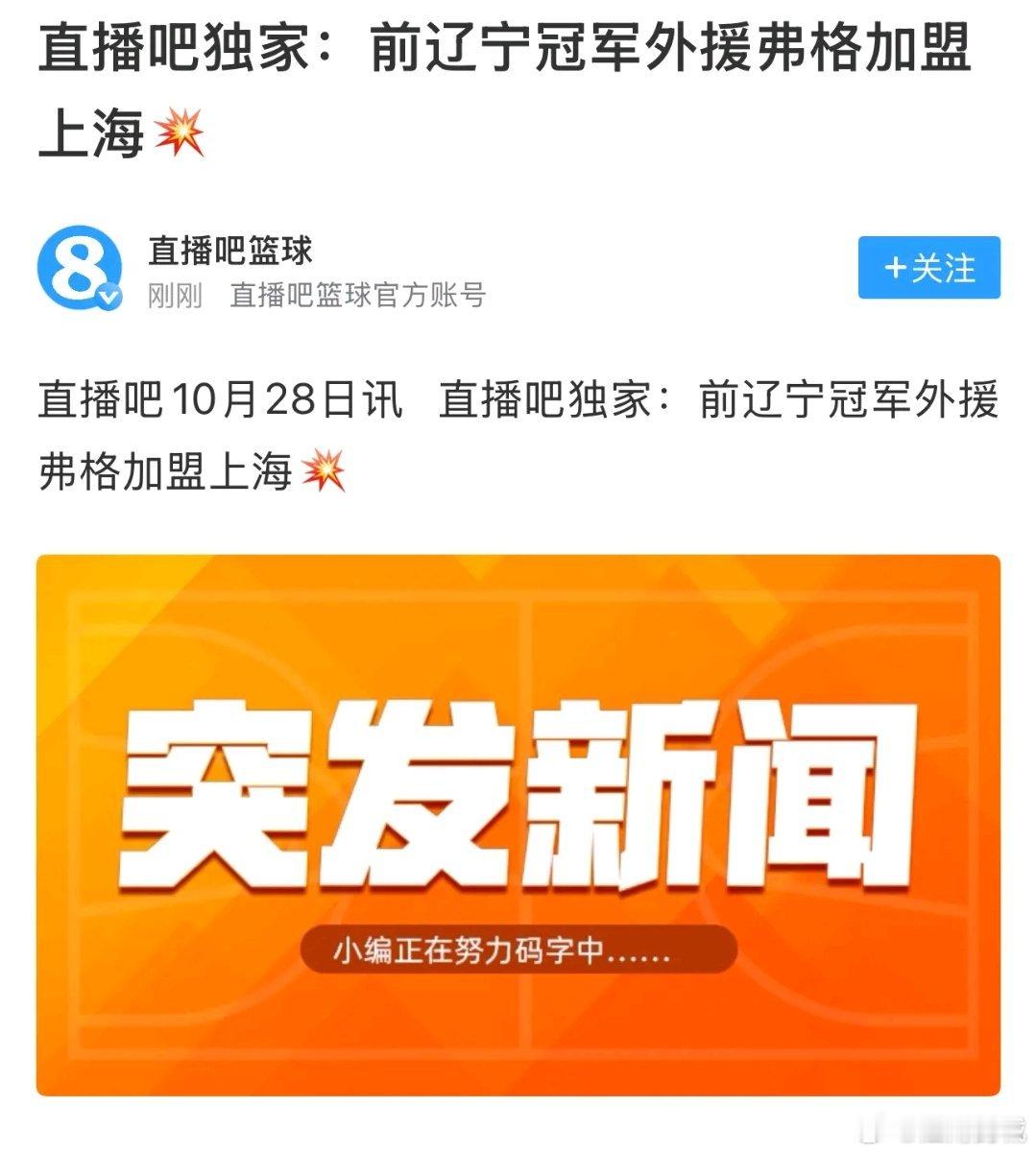 据直播吧报道,前辽宁男篮外援弗格加盟上海大鲨鱼。cbacba30年