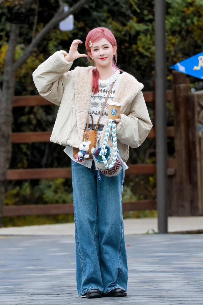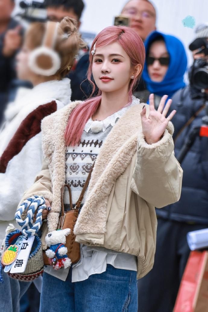 今天白鹿在录制综艺节目的时候搭配的很有清新时尚感,看起来也特别的显年轻。 白鹿里面穿白色衬衣,外面套装几何风毛衣,两件衣服叠穿起来效果很不错。 白鹿在最外面套了一件宽松的外套,凸显出了柔和清新之美,也很有洒脱感。 她下身穿蓝色牛仔裤,脚踩黑色皮鞋,看上去非常的酷。 白鹿这次特意把头发染成了红色,还戴着银色的发卡,像个靓丽的非主流少女。 她画着精致的妆容,还染着红色的嘴唇,气质超好。