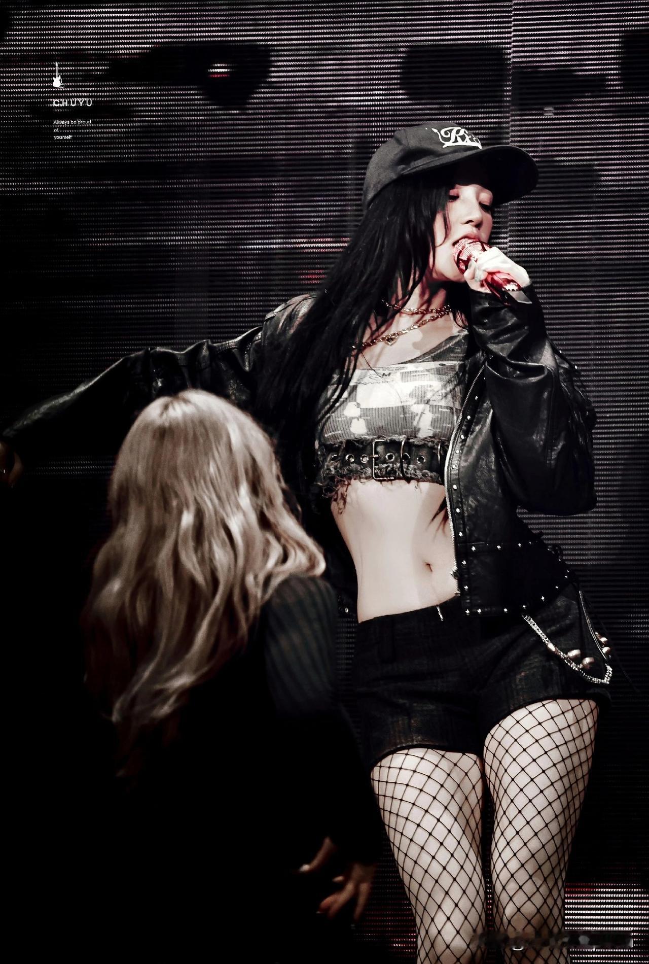 宋雨琦这舞台表现力绝了! 一身黑色look直接炸场子好吗! 皮衣加裹胸又拽又辣,渔网袜配超短裤把甜酷风玩到极致,这姐太懂怎么拿捏舞台了! 跳舞时甩头发的瞬间A到爆,每个踩点都精准踩在我心上! 又野又飒的造型配上她招牌猫系笑,简直是可盐可甜的本体~ 内娱女团舞台表现力天花板又双叒叕刷新了! 宋雨琦请把酷妹焊在身上!