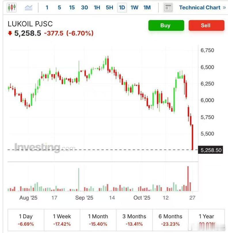 3、卢克石油公司宣布,由于一些国家对该公司及其子公司采取“限制措施”,该公司宣布有意出售其国际资产。股价在一周内已经下跌了 17%。