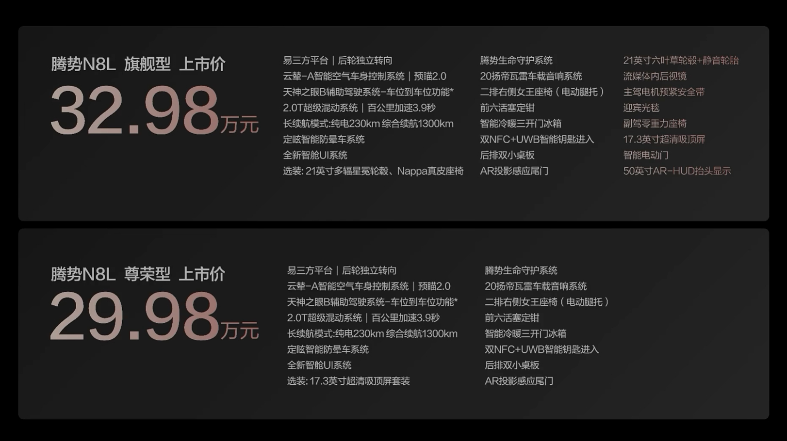 腾势N8L 价格来了,29.98万元、32.98万元,比预售价又便宜了2万