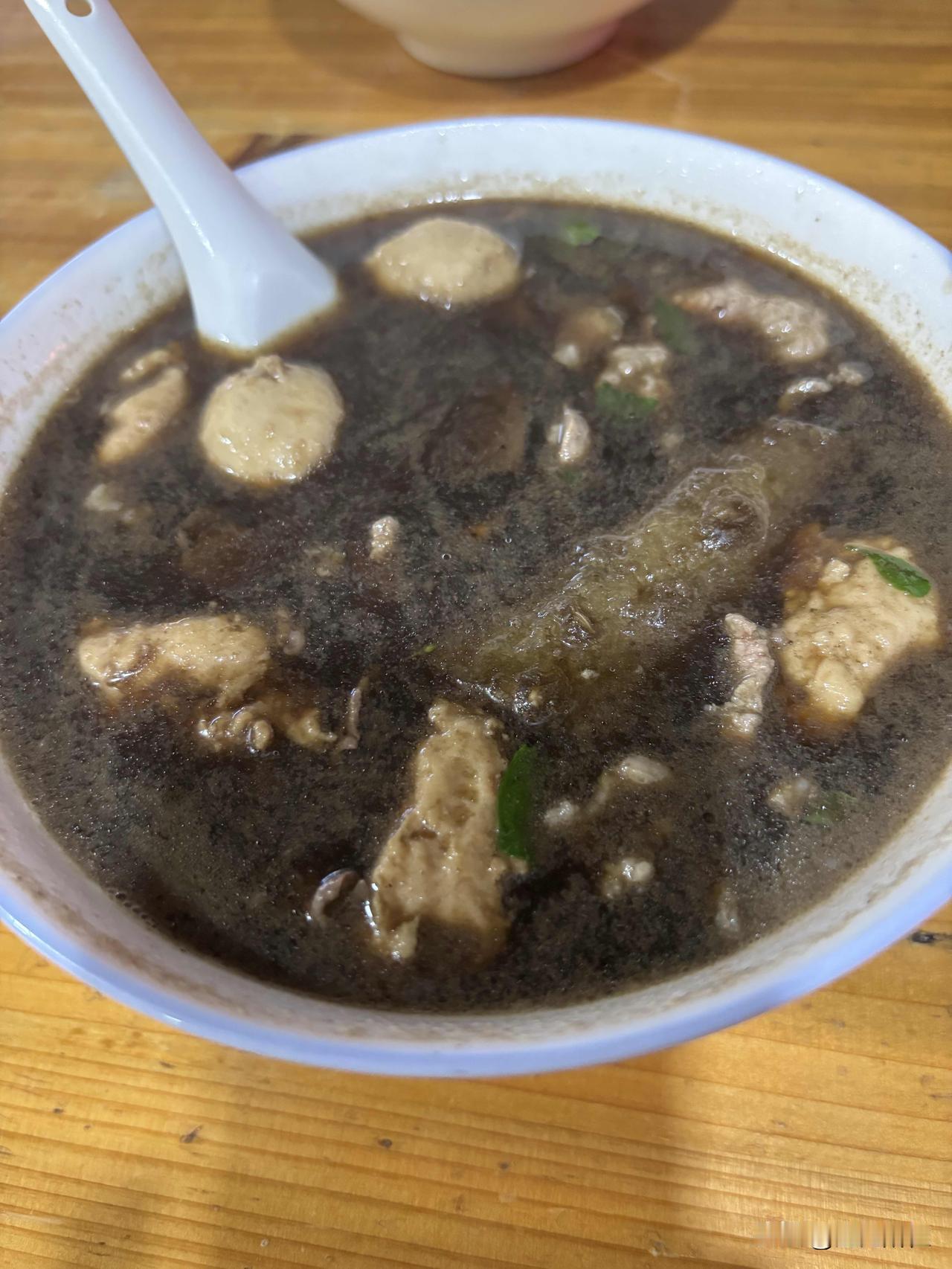 晚上喝了白粥,很快就饿了! 才不怕!我在揭阳美食之镇:新亨!九点半走出来,几条长街的夜市档口才开始开张!这边的网店生意甚是红火,很多人有深夜出来觅食的习惯,久而久之,带动当地的夜宵饮食全面发展。 走了好一会,可以选择的夜宵店实在太多了!选择困难症啊! 今晚选了一家熟地汤,里面的食材有七八种,新鲜瘦肉、猪肝、粉肠、猪红、肉丸、猪腰、当地特色炸猪皮、枸杞叶,滋阴补血的熟地汤加猪骨头鸡骨熬了三个小时,支一口小锅,各种新鲜食材逐个加入,喝一口,哇,鲜甜爽口啊!