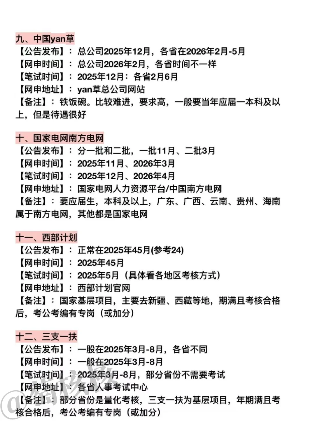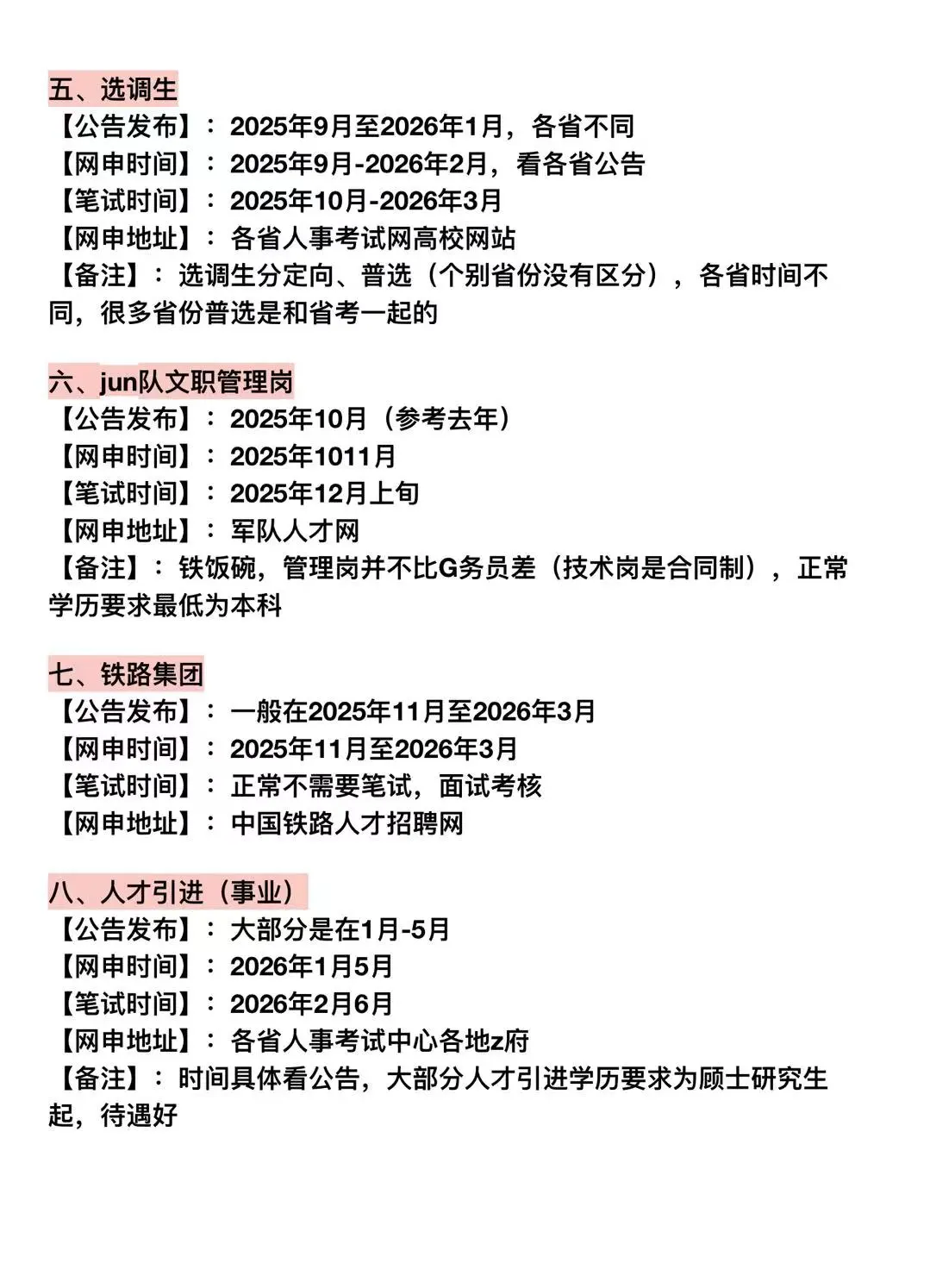 7⃣事业单位考试:3-5月/8-10月报名,4-5月/9-10月考试