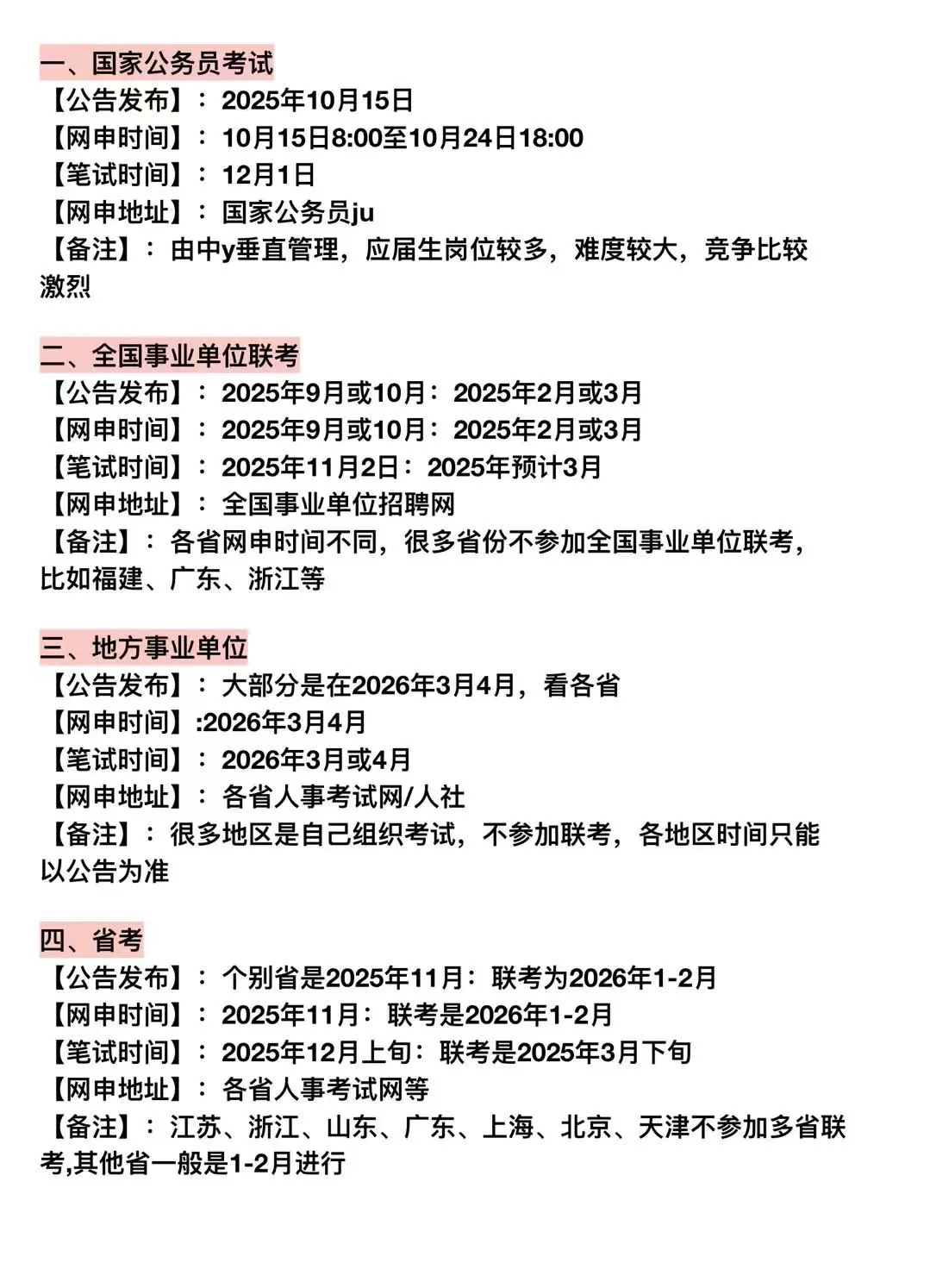 2⃣公务员省考(江浙沪):11月报名,12月考试