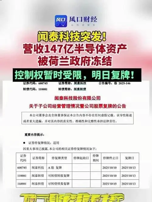 前脚刚因订单激增暂停发货,后脚核心资产就被冻结夺权 —— 半导体龙头闻泰科技的剧情反转,比电视剧还刺激。10 月 13 日复牌的公告背后,是荷兰政府一纸令下,将其 147 亿营收的安世半导体全球 30 个主体资产全面冻结,连 CEO 张学政都被暂停职务。