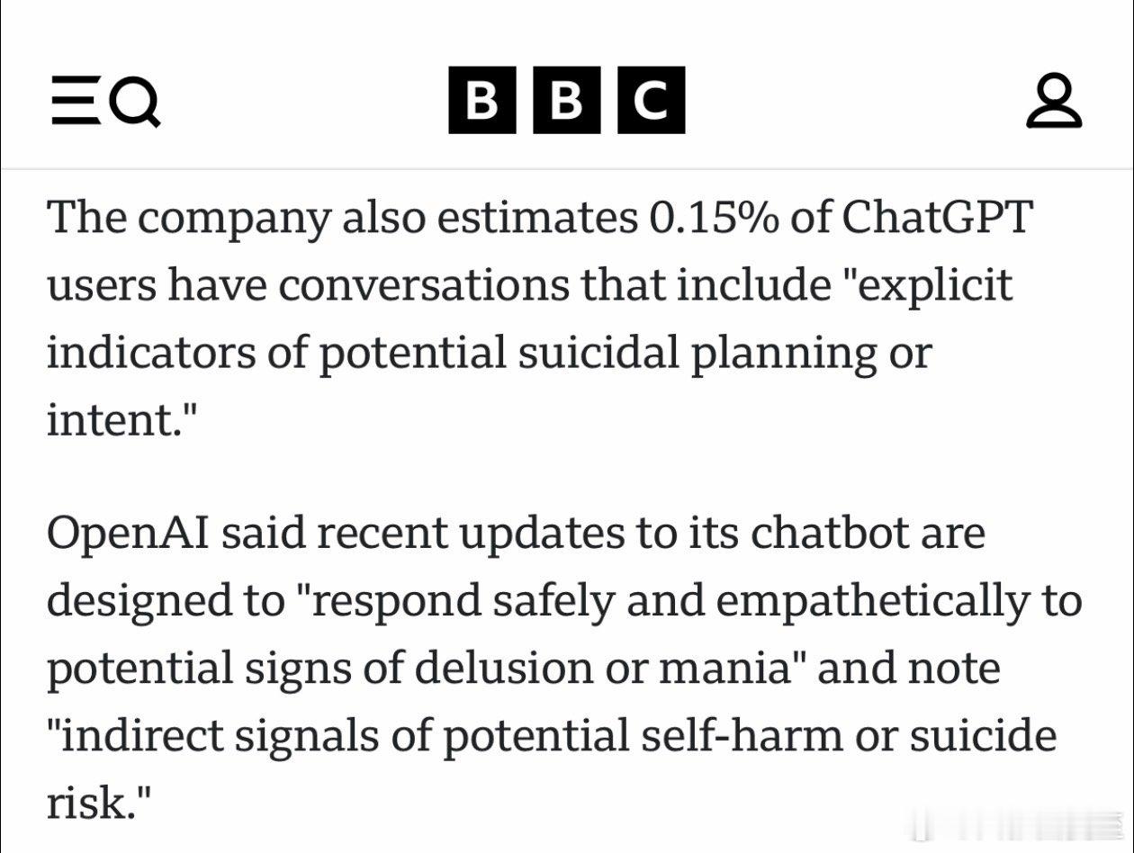 OpenAI数据:ChatGPT用户,0.15%有明确的自杀意图或有潜在自杀计划