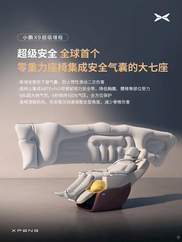 小鹏X9超级增程首搭安全气囊的零重力座椅