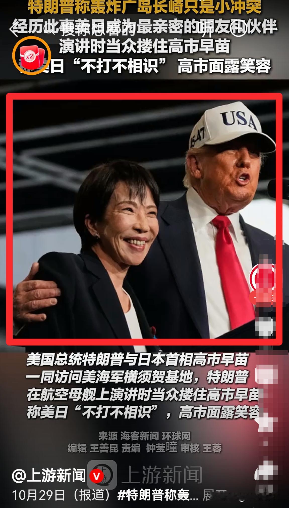 特朗普称,广岛长崎“蘑菇云”只是小冲突!日本首相高市早苗却是笑容满面! 当年的太平洋战争,铀蛋“小男孩”造成广岛14万多人死亡,钚蛋“胖子”造成长崎7万人死亡。死亡如此多的人,在特朗普口里居然是“小冲突”,在特朗普心里日本子就不是人,死了就死了,只是利用下小日子而已。把它打趴了才会服顺!!请问日本首相,20多万失去生命的小日子死的不冤吗?还陪笑!