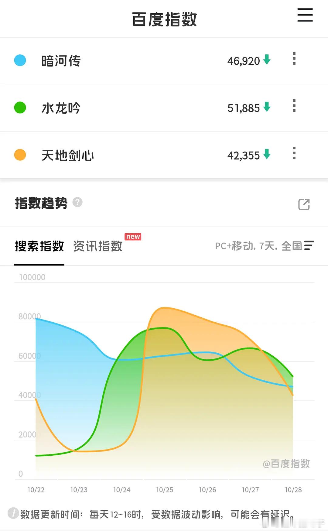 三部在播剧的走势,看这个其实就很清楚了 (暗河传降了是因为单更了)