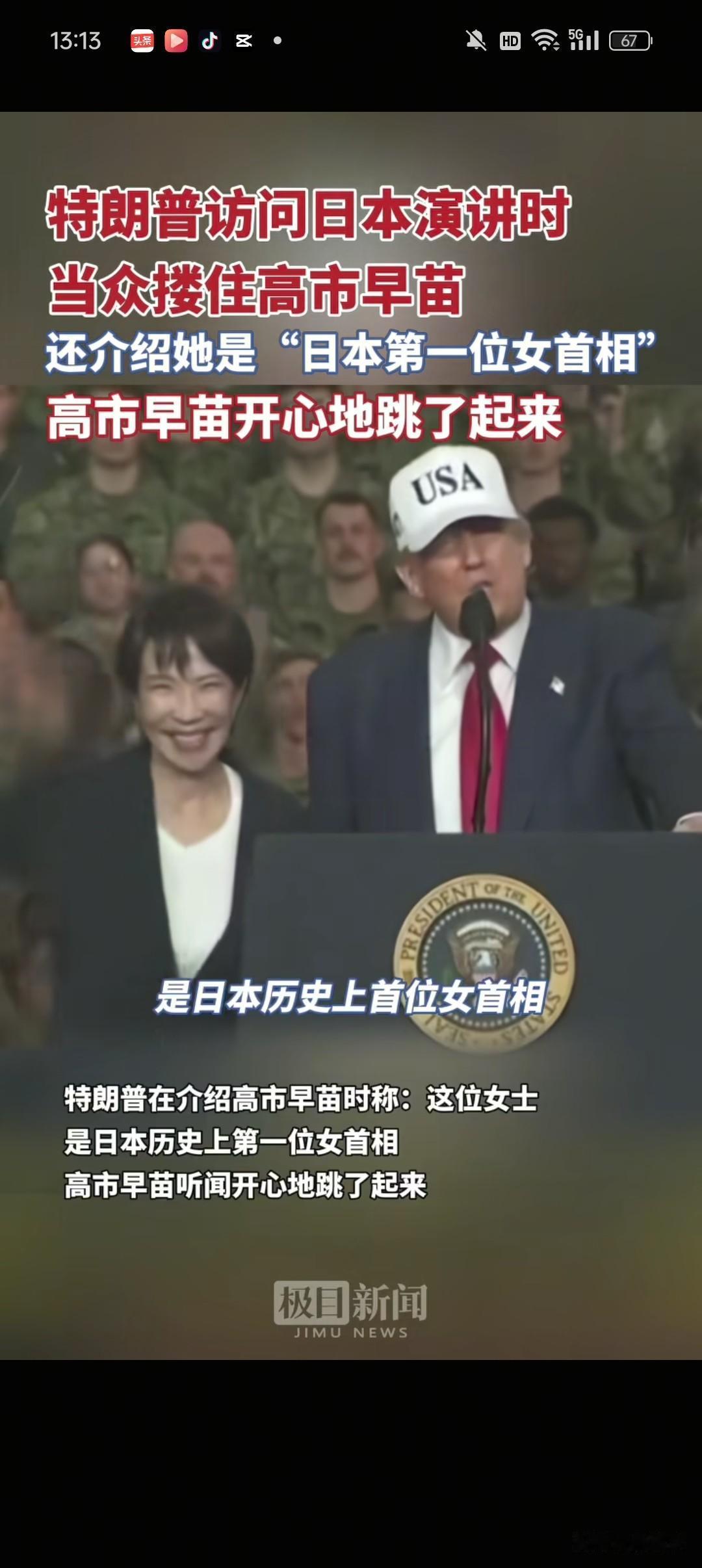 真不是我多想,特朗普访日这画面看得人血压直飙!哪是啥“亲密互动”啊,明明是《霸总爱上绝经的我了》!日本首相高市早苗上赶着贴脸,结果还被晾得尴尬百出。 室内阅兵时,她示意特朗普走位, 人家根本不搭理,自顾自往前走, 她只能在后面尬笑鞠躬再追赶 。 更讽刺的是,为了换句“伟大首相”的评价,直接签了5500亿美元的对美投资,利润九成归美国,这不就是明着送钱吗? 日本民众上街抗议真不冤, 物价飞涨的时候,政府拿着税金讨好美国、买武器,哪顾得上老百姓死活 。 所谓的“同盟亲密”,不过是弱者对强者的妥协,哪有半分国体尊严可言。 你说这种靠牺牲本国利益换來的“外交认可”,到底值不值?