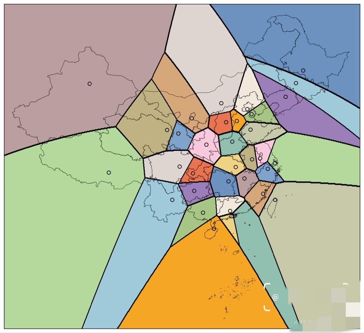离你最近的省会是哪个[微笑] 这个图很有意思,可以理解为如果你是一个生活在边线上或者边线外的人(可二选一省会),生活在交点上的人(可多选一省会),当你需要省会资源的时候(如医疗,购物),你会选择到哪一个省会,看真实判断是否与数学作图相符,有意思