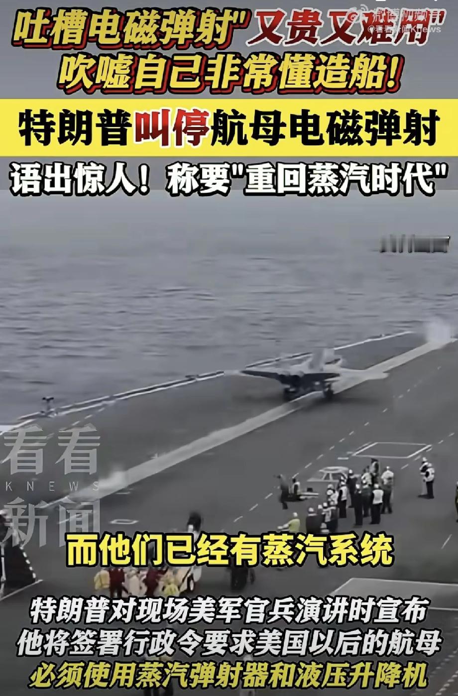 真是国运来了挡都挡不住!谁能想到竟然会有这么一天! 特朗普竟然也被印度赢学影响了! 大家都知道电磁弹射要比蒸汽弹射更优秀、更迅速、更稳定,特朗普却下令美国航母必须使用蒸汽弹射,认为电磁弹射又贵、又不稳定,没有人比他更懂造船,打不过就放弃了,放弃电磁弹射了。 真希望特朗普能多当几年,有他在超越老美指日可待。 大家觉得呢?