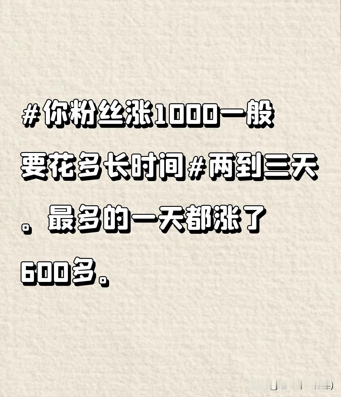 你粉丝涨1000一般要花多长时间两到三天。最多的一天都涨了600多。