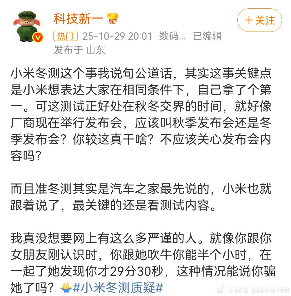 冬测本质是测试车辆冬季严寒情况下车辆各方面表现,这也是为什么常规车企都选择在冬季最冷的时候在东北搞,这个准冬测本质上就是一个“儿戏”,完全没必要传播。