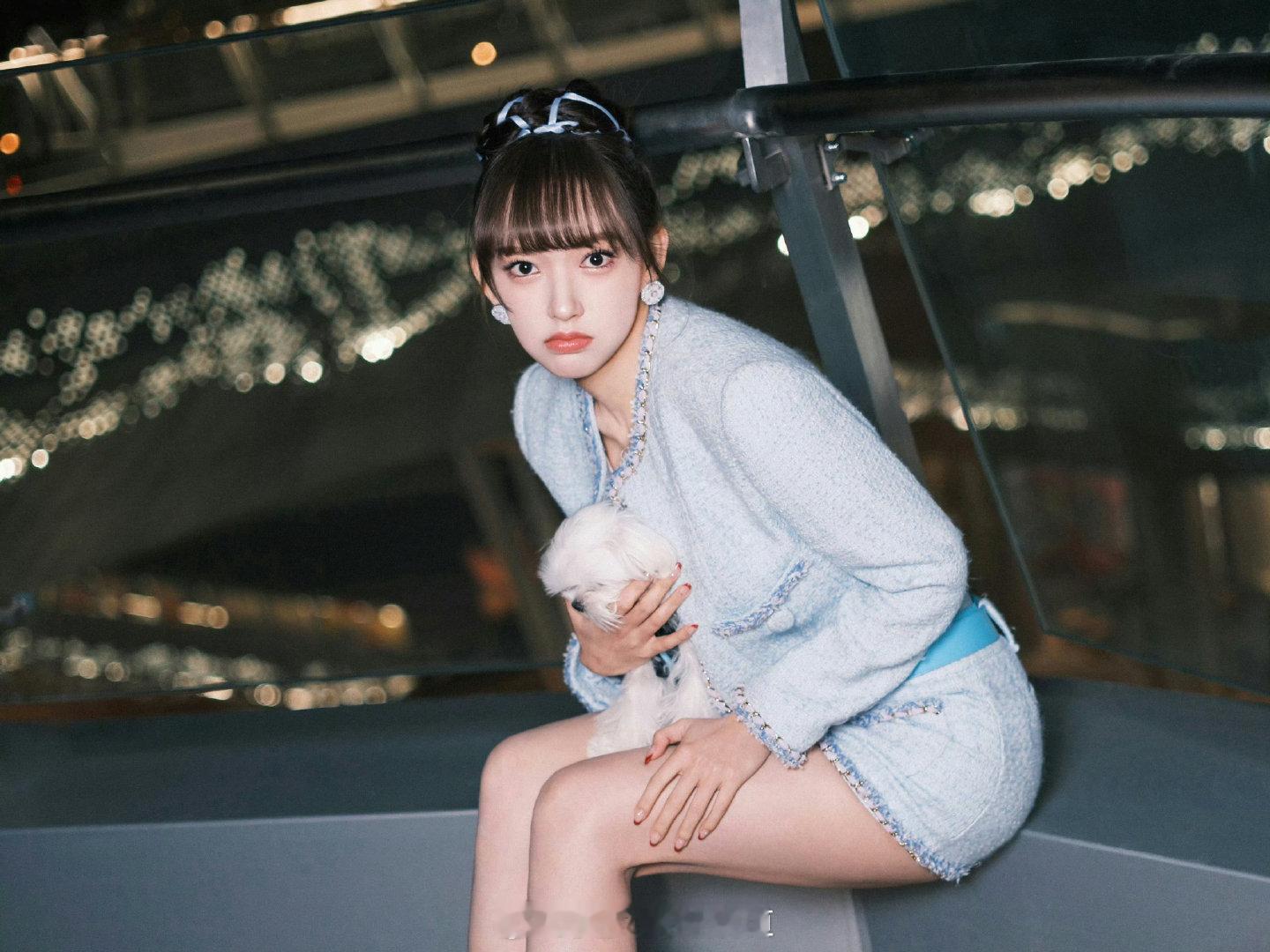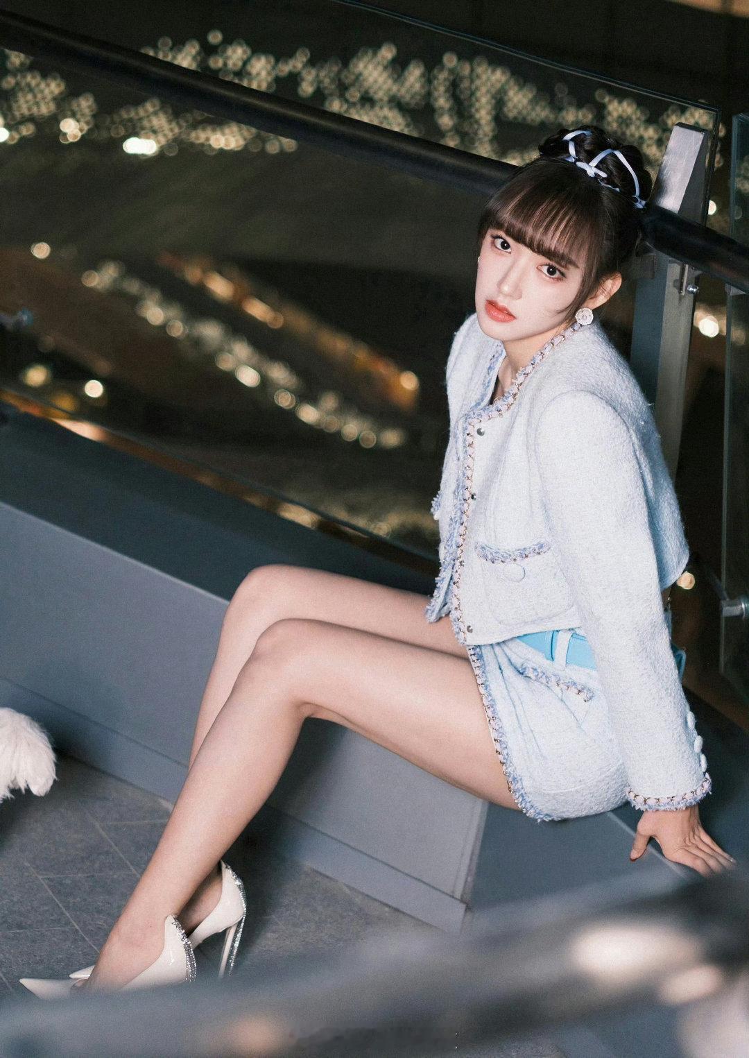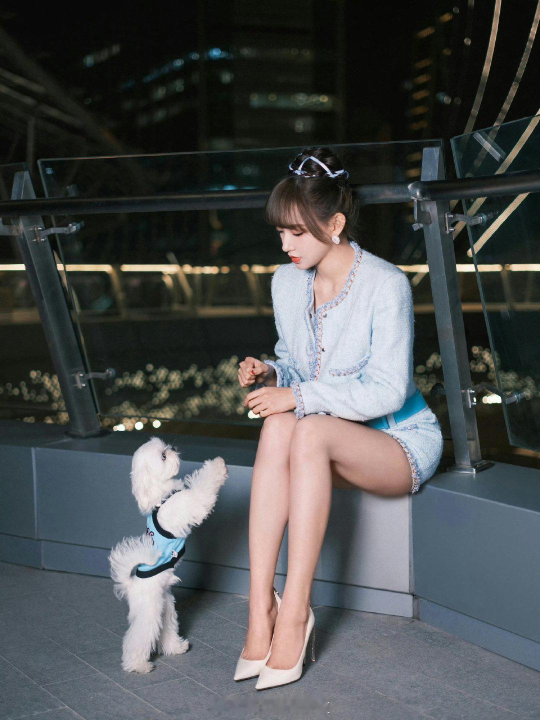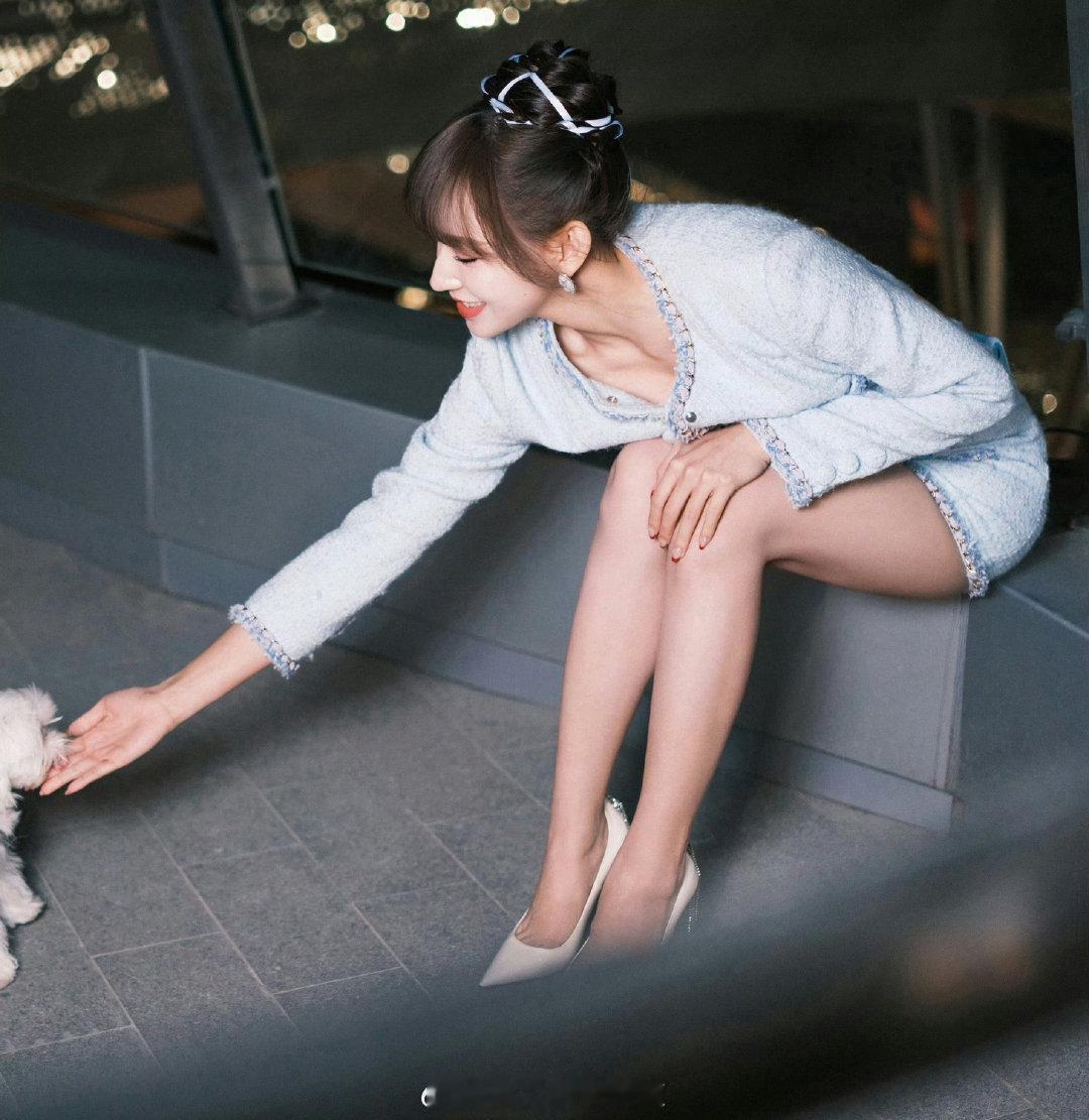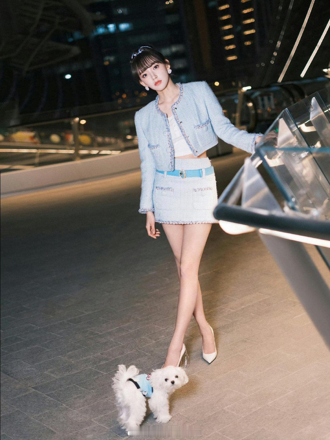 程潇甜美的小香风穿搭