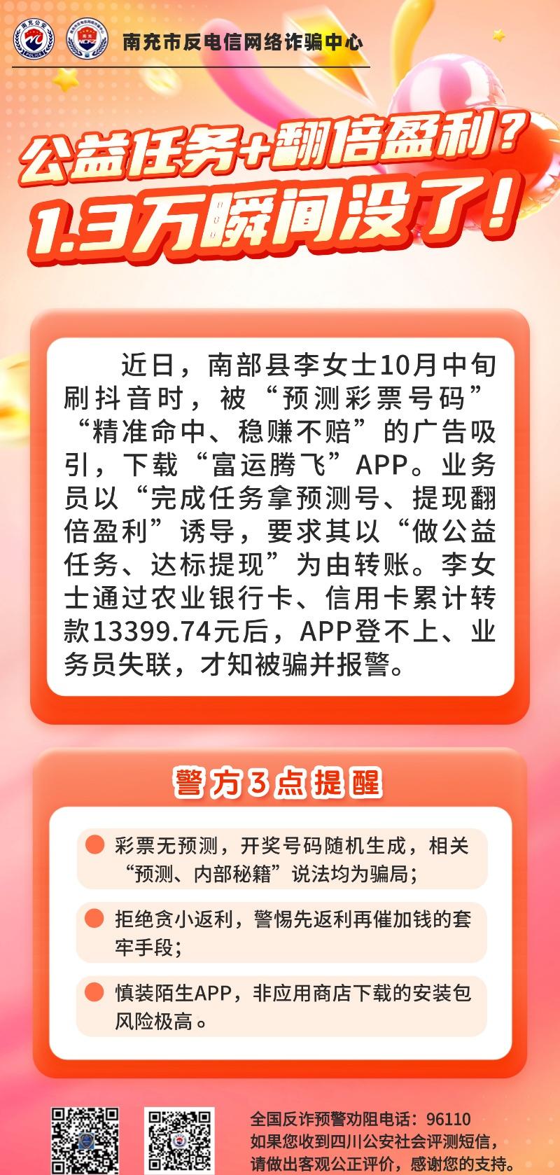 【公益任务+翻倍盈利?1.3万瞬间没了!】诈骗看似遥远,实则就在身边。了解才能防