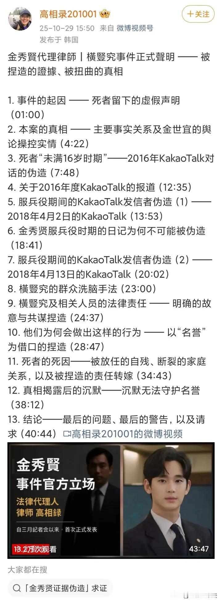 金秀贤,发文回应了! 10月29日晚上,金秀贤突然在中文互联网发文,他转发了代理律师的声明,声明挺长,但总结下来就一句话:金赛纶一方不利金秀贤的说辞以及所有证据,全部都是伪造的! 网友们看后纷纷评论: 想洗白,没那么容易。 恋tong癖还想在中国洗白? 这男的恋童没跑了,粉丝肯定很后悔自己没有未成年跑过去。 首尔江南j局本身就有问题。黄荷娜丈夫自杀那件案子就是江南j局经手。 清白的,那他当年哭得一把鼻涕是咋回事? 粉丝说金秀贤才是唯一受害者,那请问离世的金赛纶算什么? 一个韩国人发微博澄清什么? 金赛纶不是个好人也不能证明金秀贤就是个好人。 东窗事发大半年才出来喊冤,还能信的话也是白活了。 …… 金秀贤是典型的墙外开花墙内香,在韩国的地位和钱都是中国市场给的,这丑闻导致他在中国人气急剧下滑。他和金赛纶恋情并不是假的,再加上时隔半年才发声,很难不让人怀疑这半年是不是去加工证据了,真的没做过,鉴定对方遗嘱是假的,语音是AI的,需要半年吗?有和金赛纶亲吻照还想洗? 金秀贤,别洗了,省省吧,中国互联网和娱乐圈是一片清朗的天空,绝对不会容忍一个涉嫌恋tong癖的韩国艺人在这里发展!
