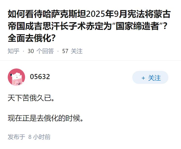 如何看待哈萨克斯坦2025年9月宪法将蒙古帝国成吉思汗长子术赤定为“国家缔造者”?全面去俄化?