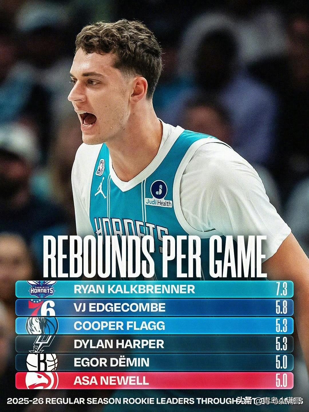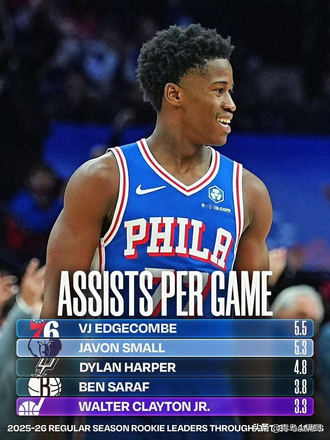 状元弗拉格已掉队!!!埃奇库姆领衔新秀得分和助攻榜! NBA常规赛已开打接近两