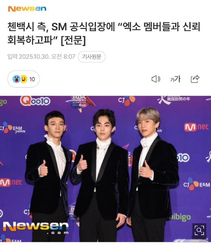 CBX称在和EXO成员直接沟通CBX回应SM称其说谎 30日,CBX方发公告回应SM称CBX说谎,表示支付销售额10%的意愿没有改变,鉴于诉讼仍在进行中,将在达成和解并结束法律程序后予以履行;透露CBX一直与EXO成员们直接沟通,为共同活动而努力;回应SM提及的异议,解释调解委员提出的金额是与双方协议无关的任意估算数额,因此双方都在调解现场表明无法接受,“双方同样于10月16日提出了异议申请,这只是正常程序中的一步,所谓CBX没有和解意向的说法与事实不符。”