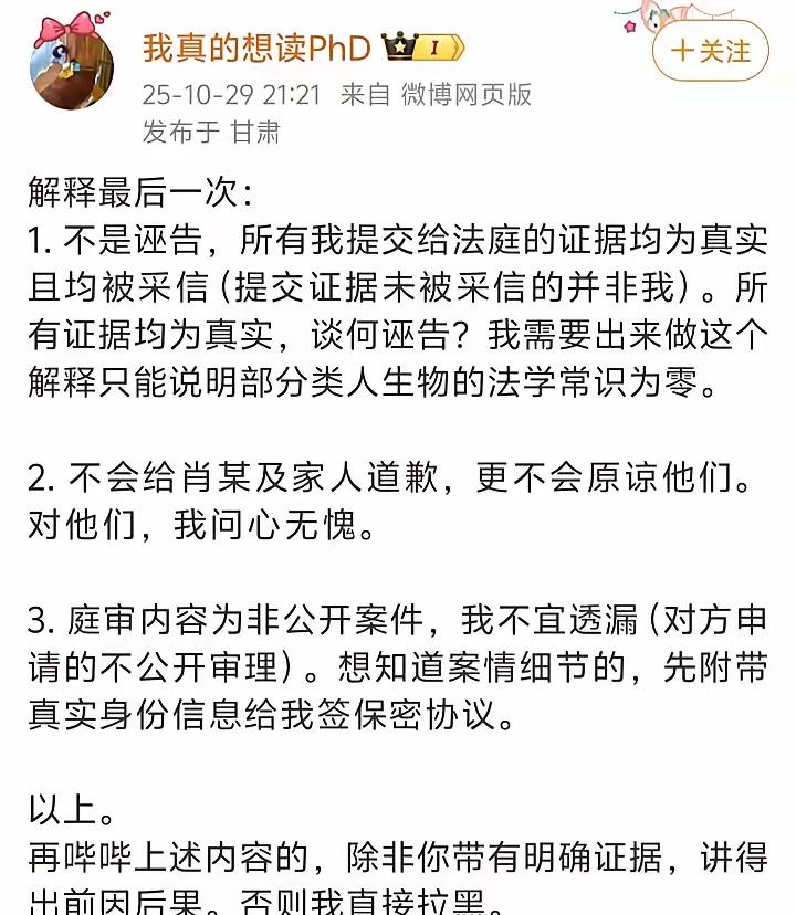 杨某媛再次发文,坚称自己并未诬告。怎么说呢,有些事情过去了就让它过去吧,让时间去淡化一切纷争和矛盾。无限制的较真和内耗下去,最终只会让自己得不偿失。真相这种东西本就是无底洞的洞,或许除了当事人自己,谁都无法去真正还原。