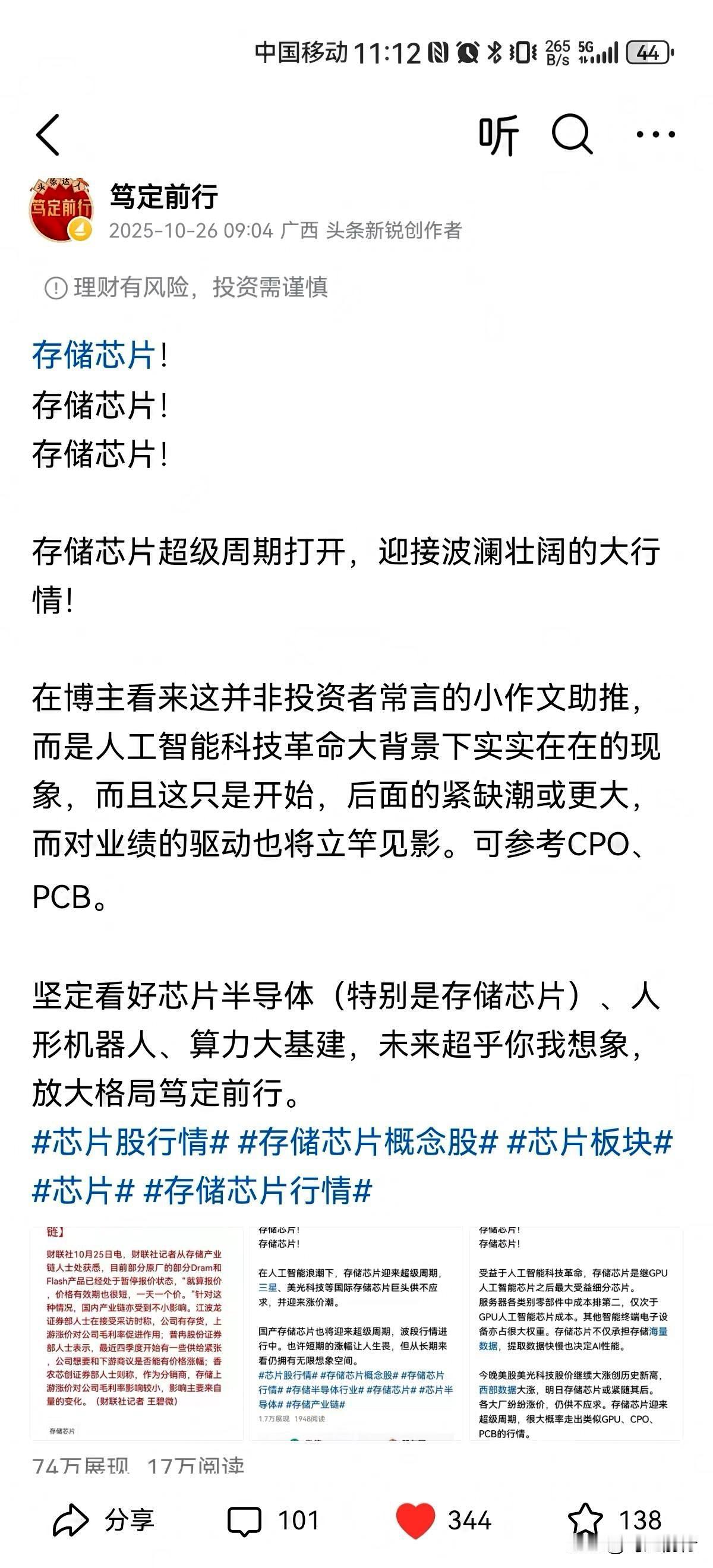 存储芯片! 存储芯片! 存储芯片! 明日大概率会爆发的几个方向:1、芯片半导体,特别是存储芯片将会大爆发。2、算力大基建,英伟达产业链将会大爆发。3、人形机器人,可能稍逊于芯片半导体和算力大基建。 存储芯片迎来超级周期,既然被称为超级周期,那么时间上不会轻易结束,空间上自然是充满无限想象空间。 英伟达的表现从结果上看是符合预期,但从近两日的表现看是超预期的,相关产业链必然再度狂欢。 人形机器人作为人工智能的终极物理载体,其周期和空间都要以更大的格局去看。 未来的世界都将超乎你我的想象,拥抱未来笃定前行! 芯片 芯片股行情 存储芯片概念股 存储芯片概念股 英伟达芯片 存储芯片的兴起,就像一阵旋风席卷了整个科技行业,几乎所有人都在谈论它。这个曾经被低估的领域,如今正迎来一场前所未有的超级周期。很多人都把它当作未来科技爆发的关键之一,似乎没有什么能阻挡它的脚步。从大数据、人工智能到云计算,几乎所有新兴的技术都离不开强大的存储能力,而存储芯片正是这个生态中的核心元素。但我们也不能仅仅因为热度就盲目跟风,超级周期虽然让人兴奋,但它并不是永远的,它的终结时点和空间依然充满变数。 回顾过去几年的芯片行业,尤其是在全球芯片短缺的情况下,存储芯片成为了投资者眼中的“黄金”。但这一切的增长是否真的可以持续?超级周期并不意味着永无止境,尤其是在全球经济形势瞬息万变的情况下。很多时候,当市场对某个领域的需求过于集中,可能反而会形成“泡沫”,这也是我们需要保持警惕的地方。如果存储芯片的供需关系出现大的波动,价格和市场状况可能会发生剧烈变化。因此,我们不能简单地将这个周期看作一条直线,而要时刻准备好应对行业周期性的波动。 英伟达的表现,也让我们对整个半导体产业链充满期待。英伟达的算力技术,尤其是在人工智能领域的应用,让整个行业对其未来的增长充满了信心。更何况,英伟达不仅仅是做显卡的,它在整个算力大基建中扮演了至关重要的角色。与其说它的股价表现符合预期,不如说它的“超预期”表现让人看到了更多潜力。从产业链的角度来看,英伟达的成功也意味着更多相关技术和企业的崛起,但同样也带来了新的挑战。在技术更新换代的过程中,谁能领先一步,谁就能在未来的竞争中占据主导地位,而谁又会被市场抛弃呢? 至于人形机器人,它是AI技术最具象化的产物,被认为是未来智能化社会的重要组成部分。无论是从科技层面还是投资层面,人形机器人都被寄予了巨大的期望。的确,随着技术的进步,我们看到了机器人从简单的物理工具向更加“智能”的方向发展,甚至可以与人类进行互动。然而,人形机器人是否能够在短期内迎来爆发式增长,依然值得深思。与芯片和算力基建相比,机器人技术在突破性应用和市场接受度上依然存在不小的差距。虽然它有着巨大的潜力,但要想真正实现产业化并产生商业价值,还需要更多的技术创新和市场需求的支持。 综上所述,存储芯片的超级周期、算力大基建的崛起、人形机器人的发展,确实是未来科技中最令人兴奋的方向之一。但我们不能仅仅看到它们的光明前景,也要认清行业背后的风险和挑战。在这个快速变化的时代,技术的快速发展和市场的剧烈波动意味着,我们每一个行业参与者都需要保持敏锐的洞察力和应变能力。只有那些能够从长远角度审视这些技术趋势、并为潜在风险做好准备的企业和投资者,才能在未来的竞争中脱颖而出。芯片股行情 存储芯片概念股 芯片板块 存储芯片行情 英伟达超级芯片 存储芯片 英达伟芯片 存储芯片技术 各位读者你们怎么看?欢迎在评论区讨论。