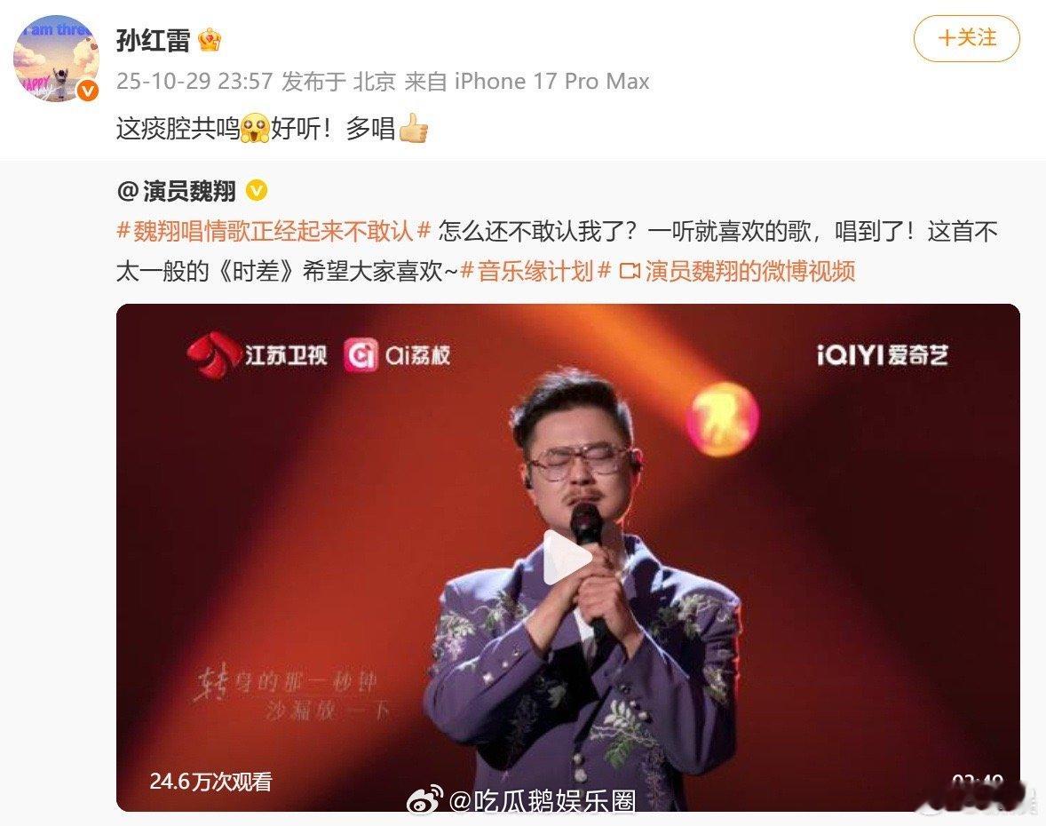 谁让孙红雷这么宣传魏翔的 魏翔在音综里凭《时差》打破偏见,烟嗓自带故事感,连歌曲创作者都夸他的声音充满未知惊喜。孙红雷的“痰腔”点评更让这舞台彻底出圈。