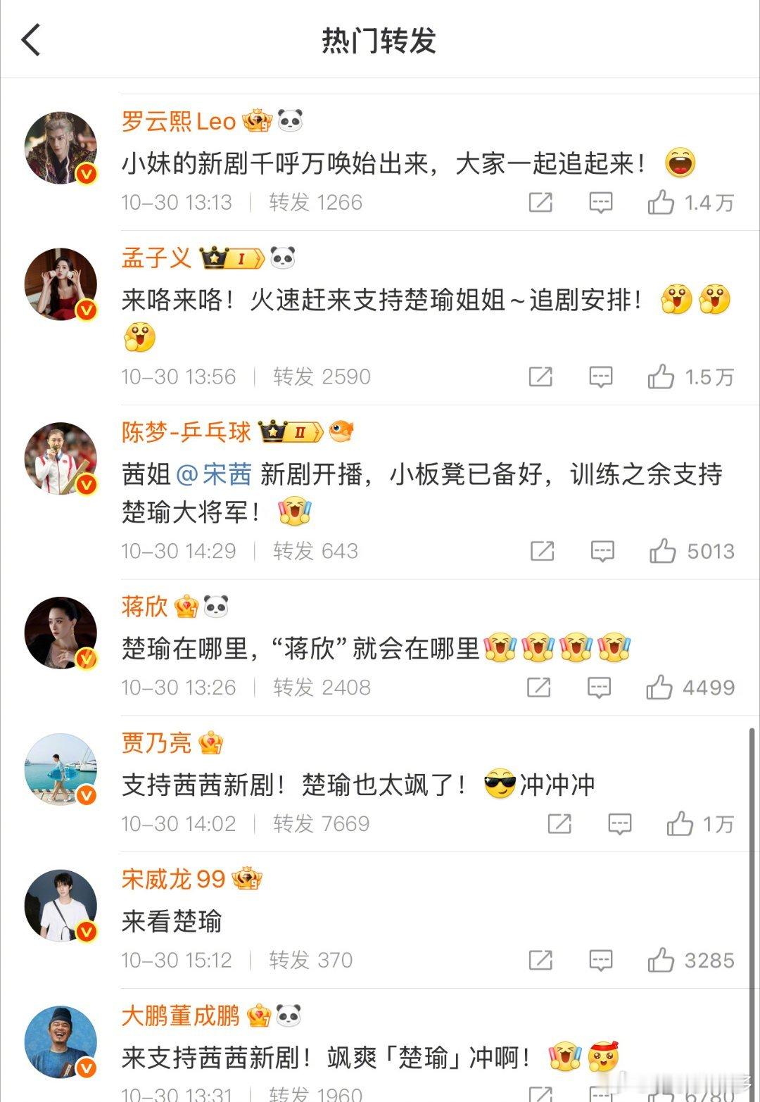 宋茜微博转发区 宋茜《山河枕》开播获力挺!杨紫、陈梦、田嘉瑞等明星扎堆转发,大半个娱乐圈送祝福,楚瑜排面直接拉满!