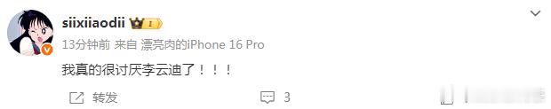 司晓迪 我真的很讨厌李云迪了 司晓迪刚又发文:“我真的很讨厌李云迪了”[哆啦A梦害怕]李云迪 司晓迪